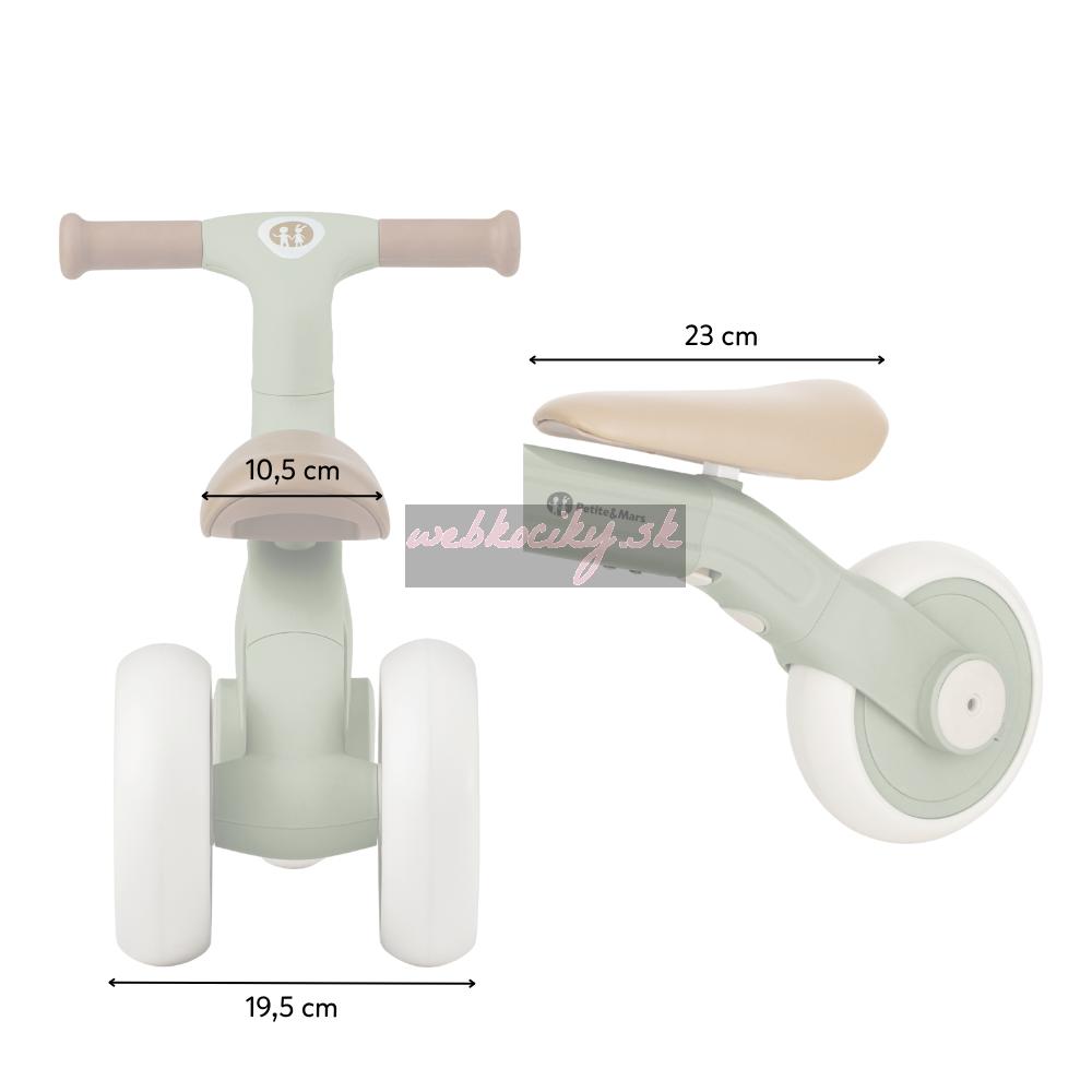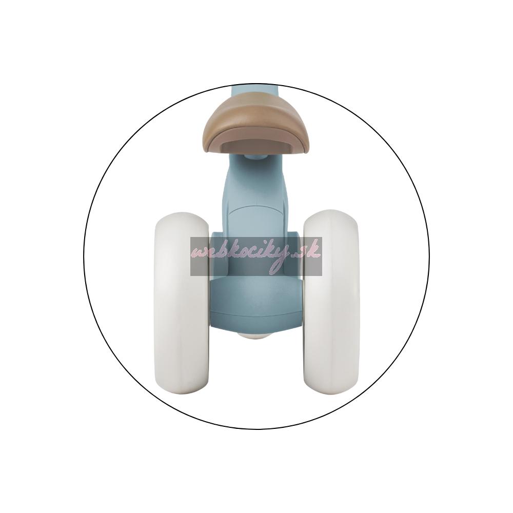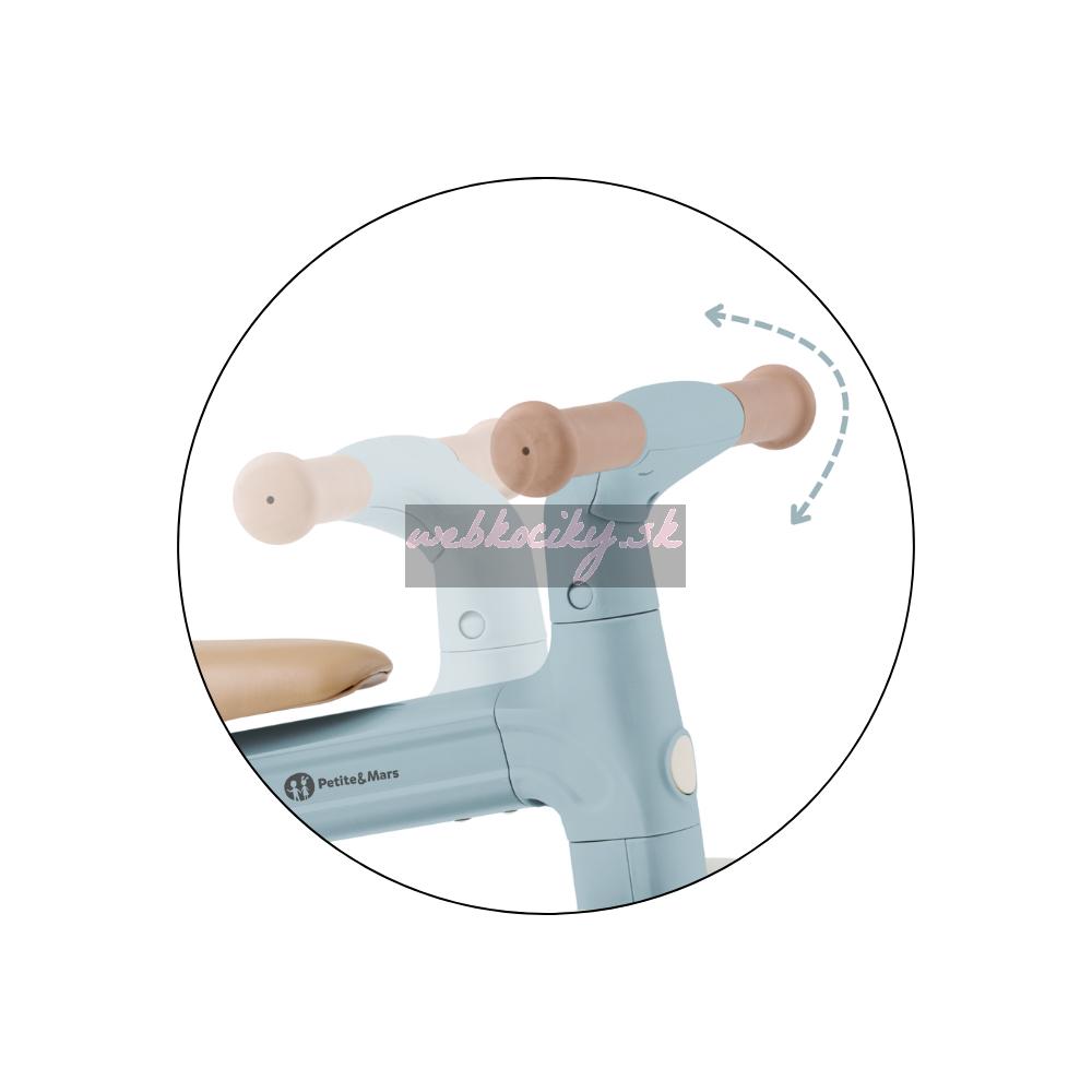Bingo má otočné riadidlá, dve nastaviteľné výšky sedadla a váži len 2,3 kg, takže ho rodičia bez problémov prenesú – aj popri taške či dieťati v druhej ruke. Penové kolieska sú tiché a zvládnu interiér aj vonkajší povrch. Celý dizajn pôsobí moderne, jemne a zároveň nadčasovo.