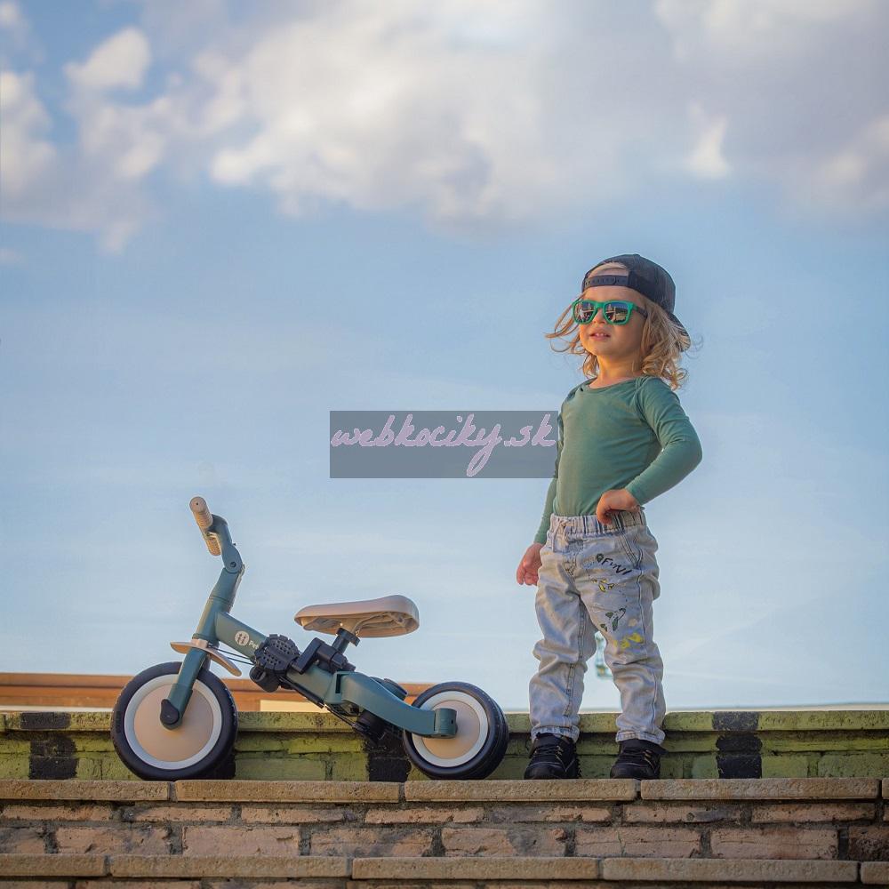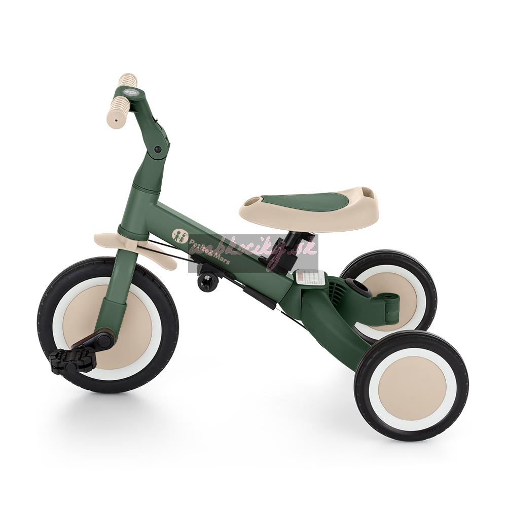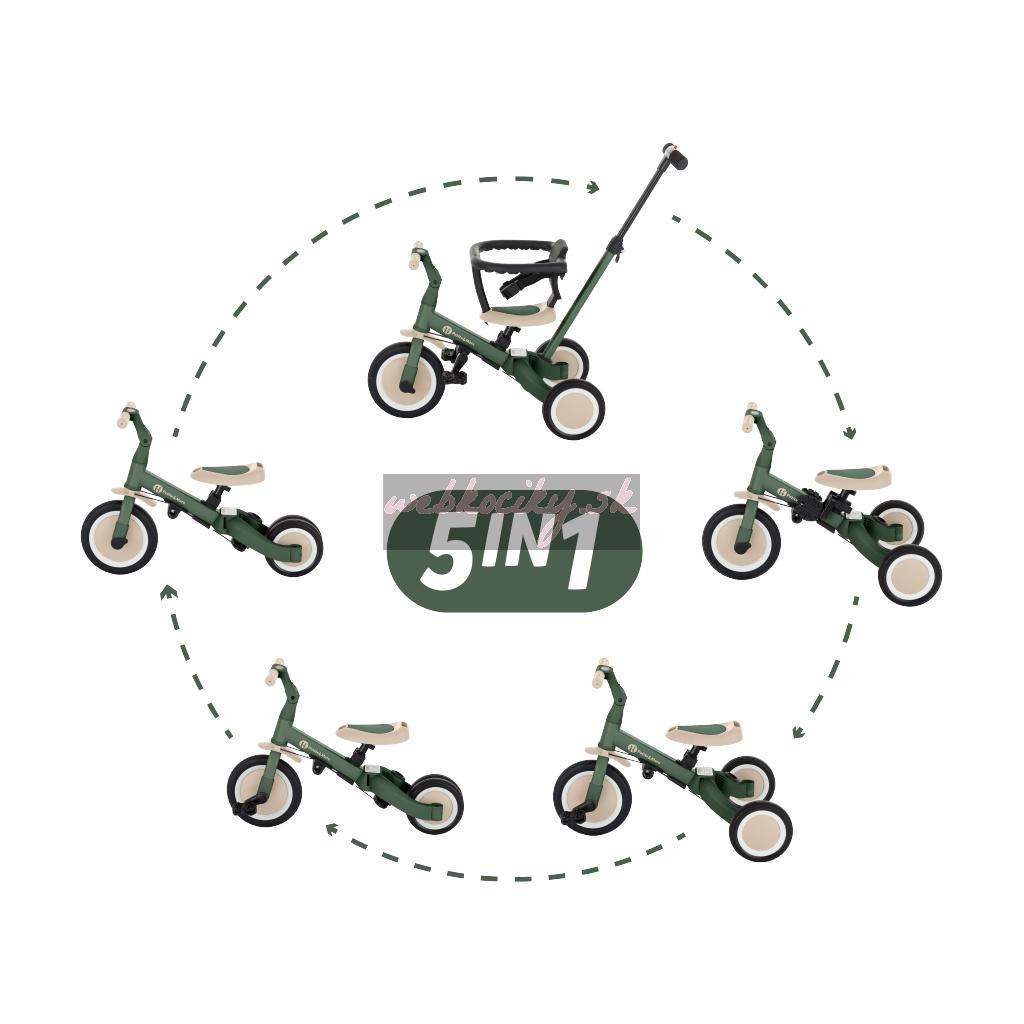 Multifunkčná trojkolka určená pre deti od 1,5 do 5 rokov alebo do 25 kilogramov. Je to nielen dopravný prostriedok na presun a učenie sa rovnováhy, ale aj spoločník pre rastúce dieťa počas mnohých vývojových fáz. Premyslené menenie sa bicykla sa prispôsobuje potrebám dieřatka podľa toho, ako sa vyvíjajú jeho motorické schopnosti. Spočiatku je to trojkolka s možnosťou asistencie rodiča, zatiaľ čo konečná verzia je štandardný bicykel s pedálmi, bez akýchkoľvek ďalších podporných prvkov. Vďaka takýmto zmenám môžete pomôcť svojmu dieťaťu naučiť sa jazdiť na dvoch kolesách.