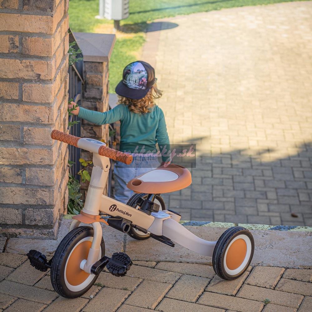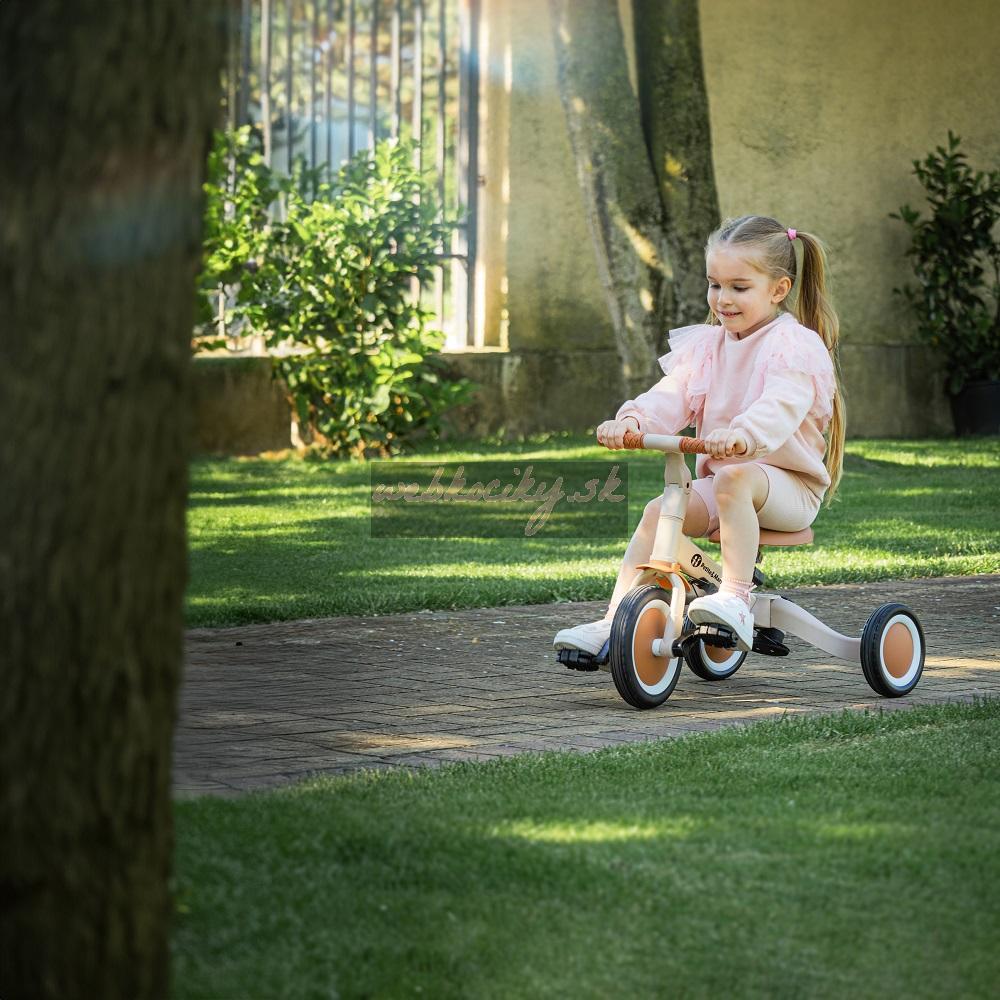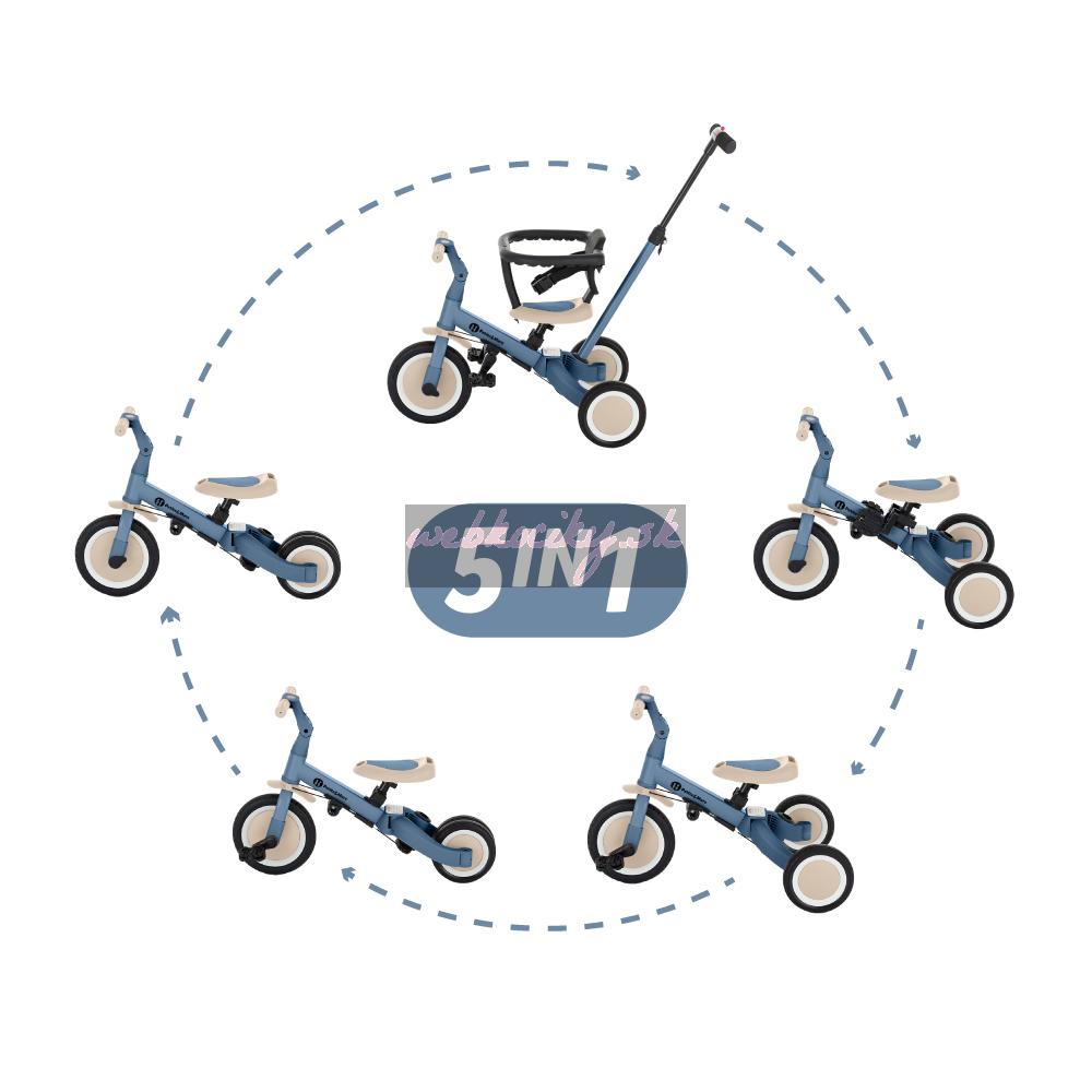 Multifunkčná trojkolka určená pre deti od 1,5 do 5 rokov alebo do 25 kilogramov. Je to nielen dopravný prostriedok na presun a učenie sa rovnováhy, ale aj spoločník pre rastúce dieťa počas mnohých vývojových fáz. Premyslené menenie sa bicykla sa prispôsobuje potrebám dieřatka podľa toho, ako sa vyvíjajú jeho motorické schopnosti. Spočiatku je to trojkolka s možnosťou asistencie rodiča, zatiaľ čo konečná verzia je štandardný bicykel s pedálmi, bez akýchkoľvek ďalších podporných prvkov. Vďaka takýmto zmenám môžete pomôcť svojmu dieťaťu naučiť sa jazdiť na dvoch kolesách.