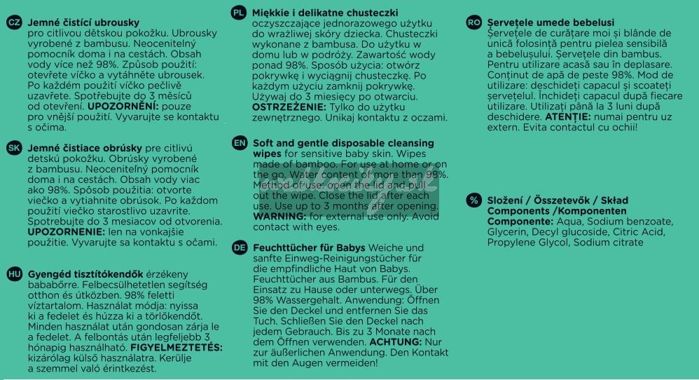 Sú neoceniteľným pomocníkom doma i na cestách. V uzatvárateľnom balení nájdete 56 ks obrúskov. Balenie po použití jednoducho opätovne uzavriete a obrúsky tak zostanú mokré a pripravené na ďalšie použitie.