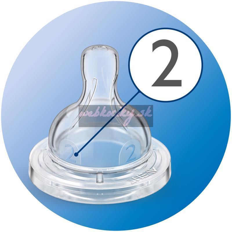 Cumlík na fľašu AVENT, 2 otvory. Extra mäkký silikónový cumlík.