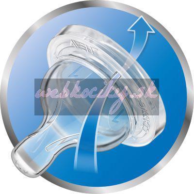 Silikónový cumlík AVENT má jedinečný patentovaný okraj, ktorý funguje ako jednosmerný ventil. Cumlík umožňuje prúdenie vzduchu do fľaštičky počas kŕmenia, čím zamedzuje vzniku vákua vo fľaštičke. Dieťa sa nemusí cumlíka pri kŕmení púšťať a môže piť súvisle ako pri dojčení bez prehĺtnutia vzduchu.