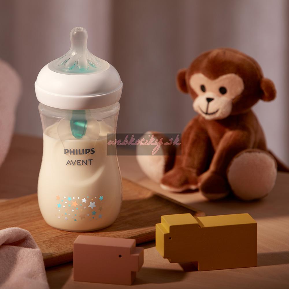 - Umožňuje pokojné a pohodlné kŕmenie. Cumlík Natural Response podporuje prirodzený rytmus satia, prehĺtania a dýchania dieťaťa a ventil AirFree je navrhnutý tak, aby odvádzal vzduch z fľaše na ochranu pred kolikou, plynatosťou a refluxom.