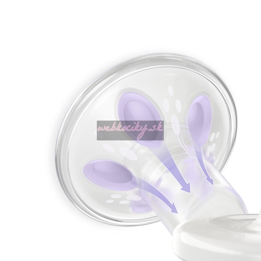 - Pohodlná silikónová vložka jemne stimuluje tok mlieka