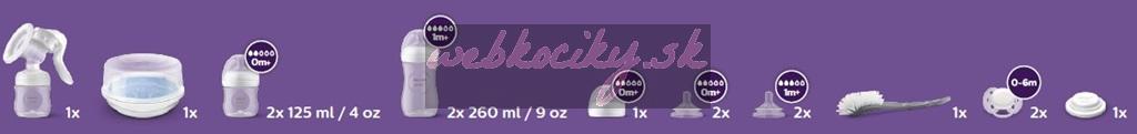 Súprava na dojčenie je ideálna pre mamičky, ktoré chcú mať všetko potrebné na odsávanie, kŕmenie a čistenie. Obsahuje množstvo príslušenstva: manuálnu odsávačku mlieka, sterilizátor, cumlíky a detské fľaše.