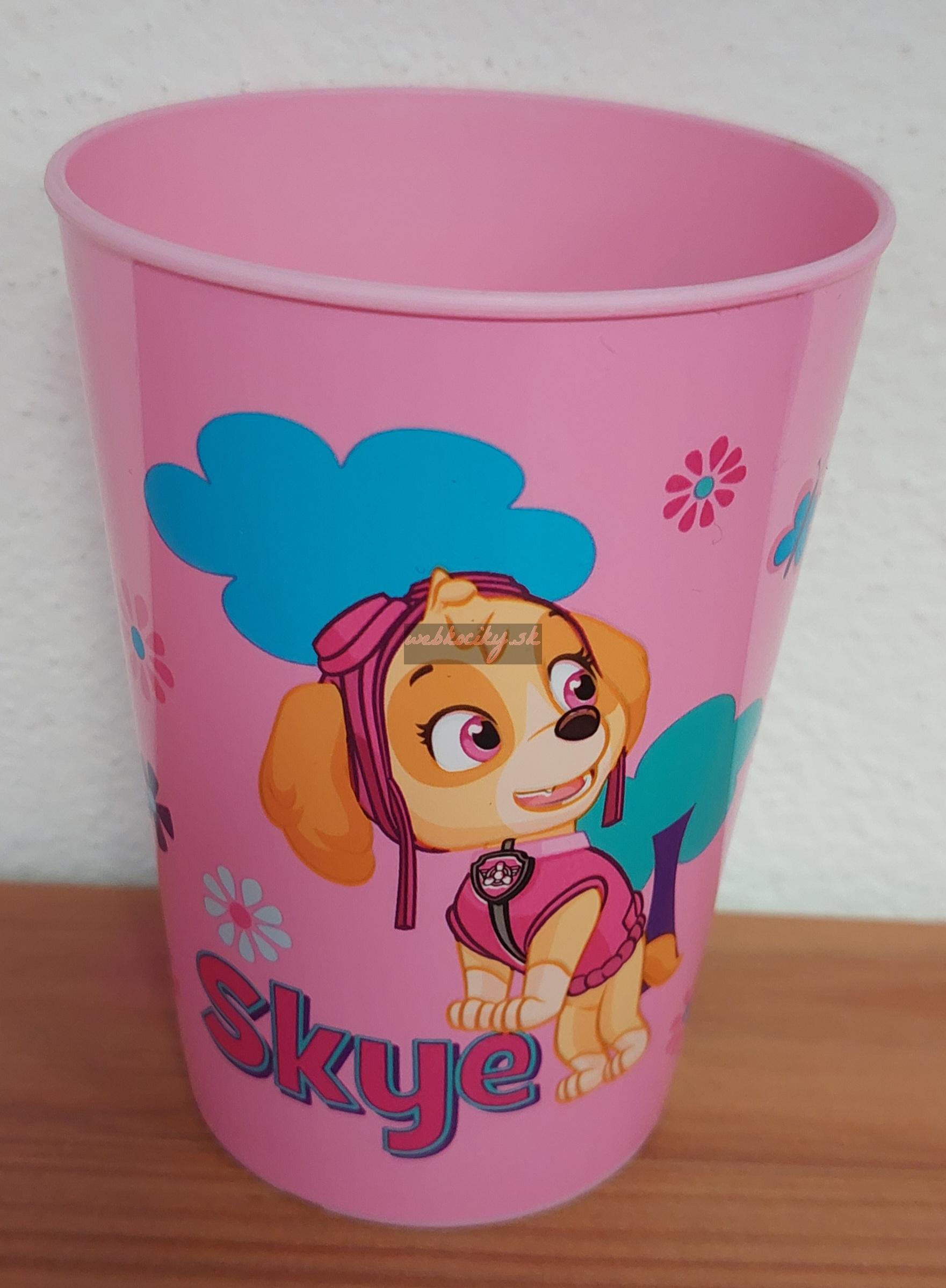 Plastový pohárik Banquet s motívom Paw Patrol. Nie je vhodný do umývačky riadu ani do mikrovlnej rúry.