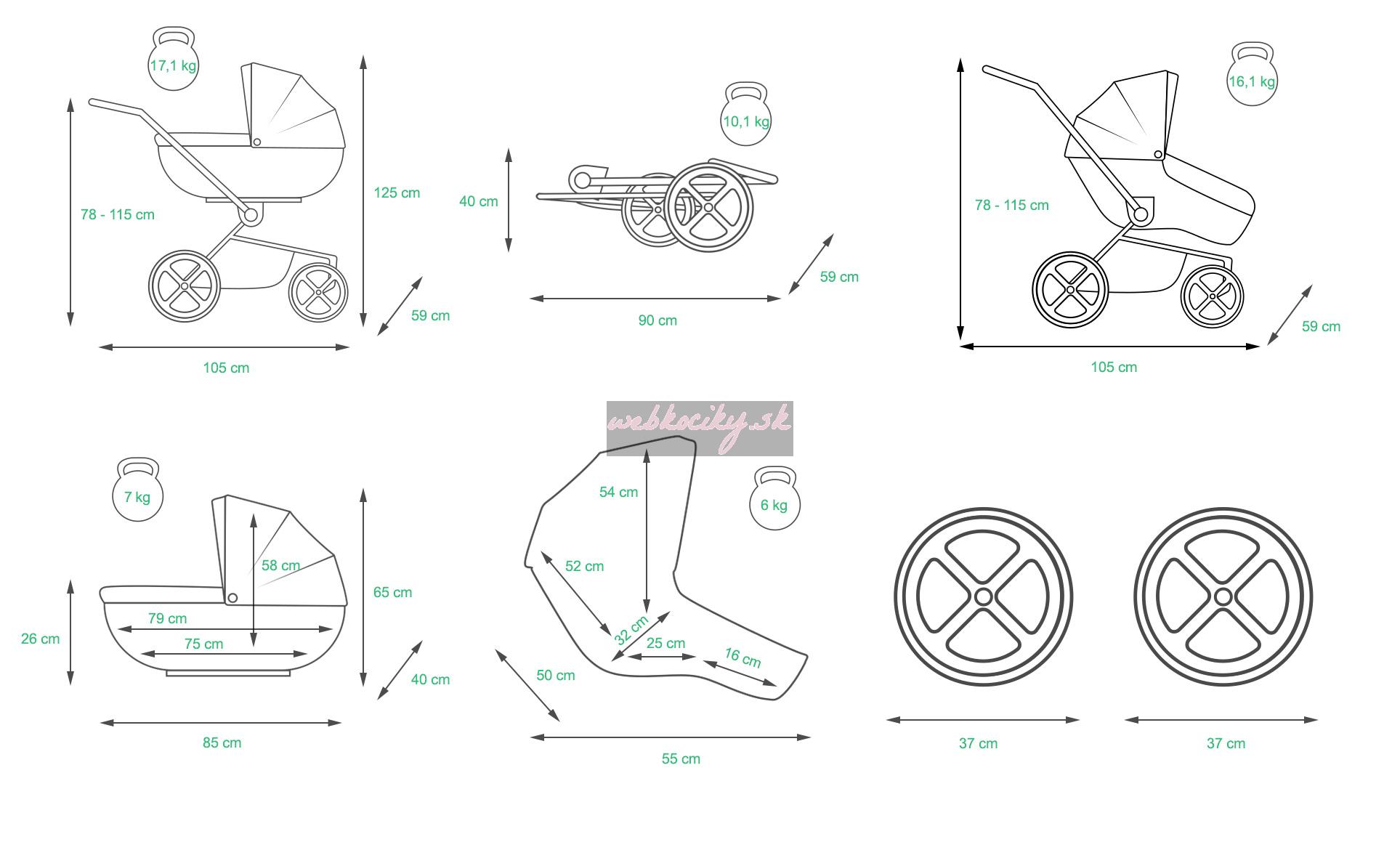 Rozložený kočík (s kolieskami) 105 x 59 x 125 cm