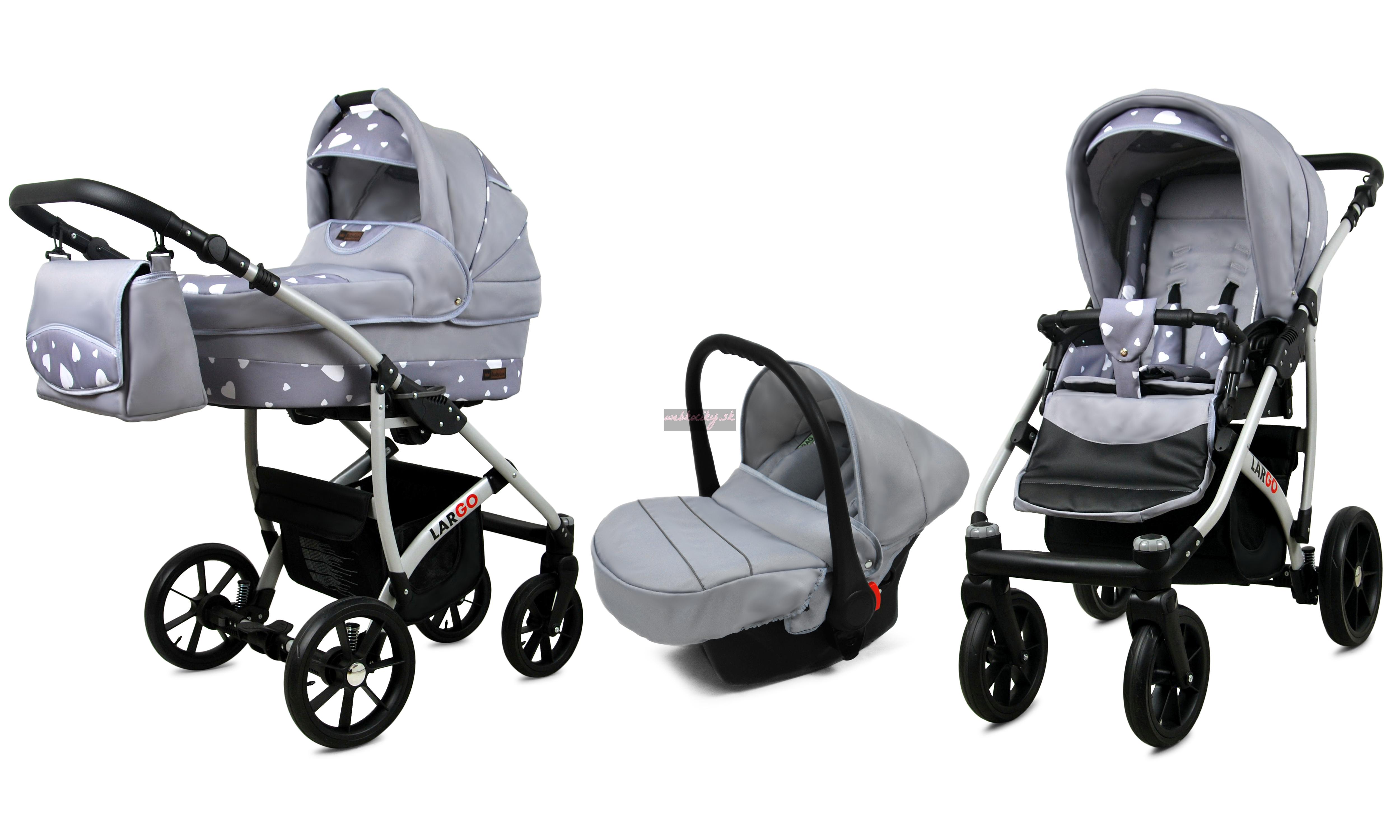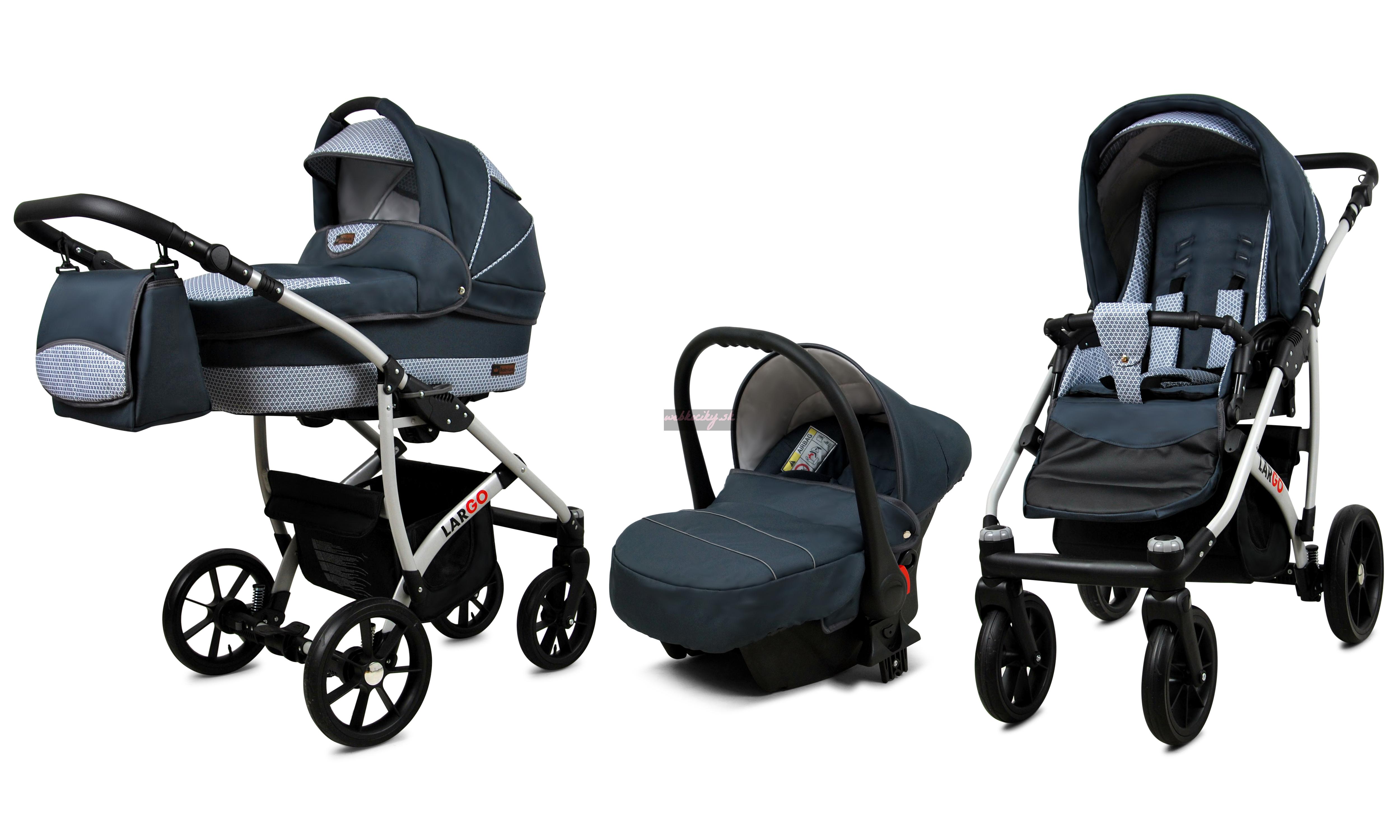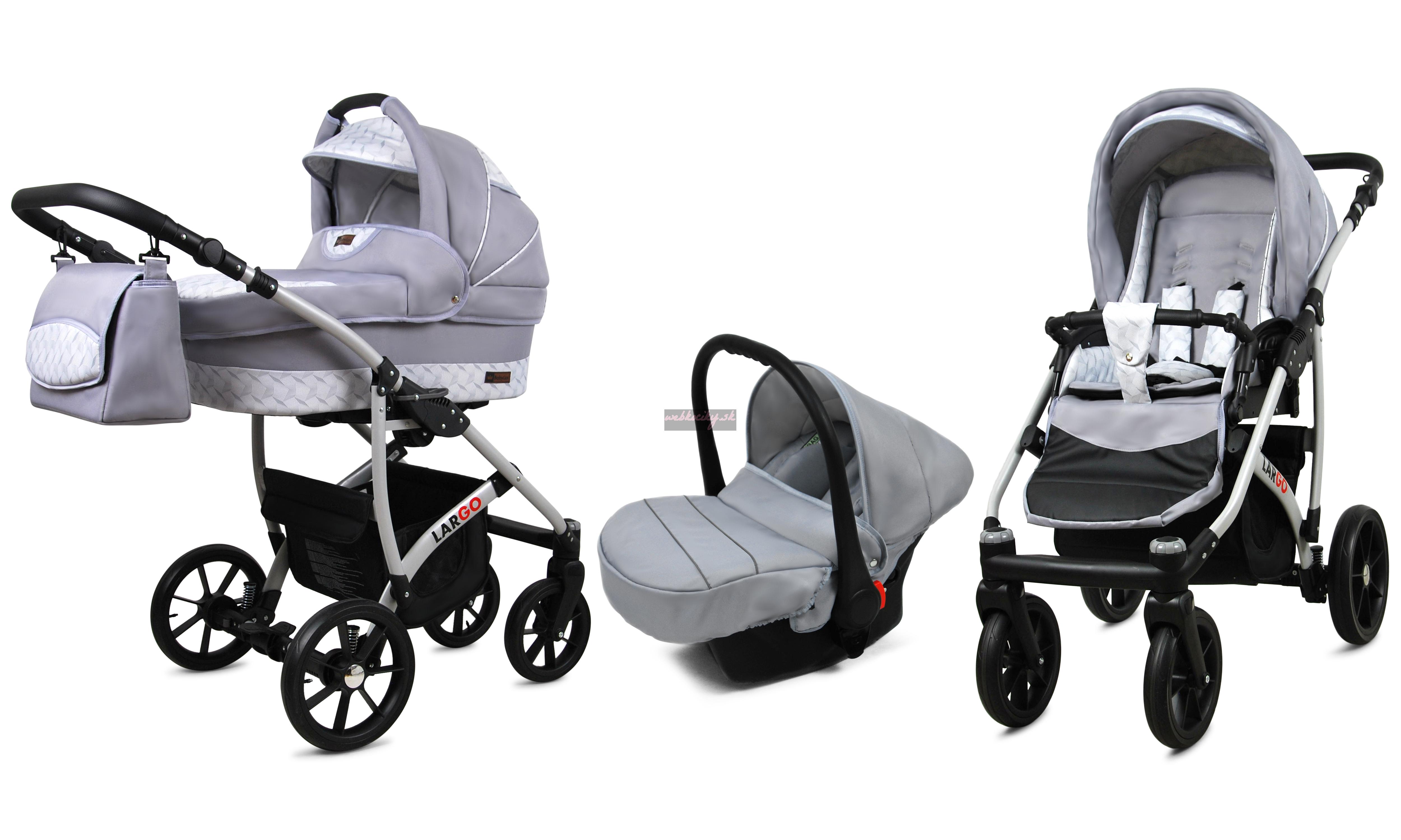 Nová kolekcia kočíkov Largo má pevnú konštrukciu z kvalitných materiálov. Kožené čalúnenie a detaily v kombinácii s precíznou farebnou tkaninou, ktorá podčiarkuje jedinečnosť a atraktívny dizajn tejto kolekcie. Pohodlná a veľká nákupná taška je taktiež veľmi praktická v každodenných situáciách.