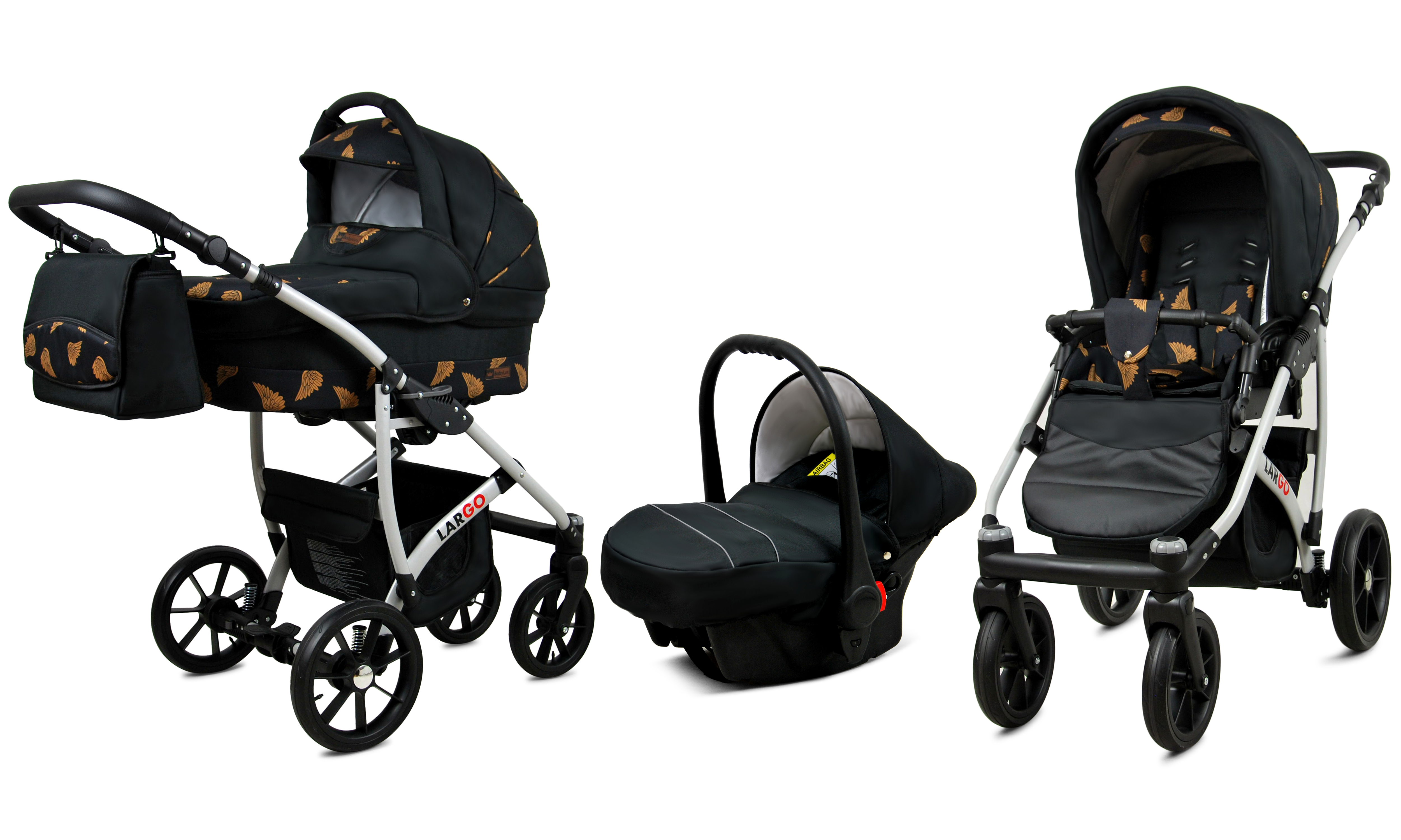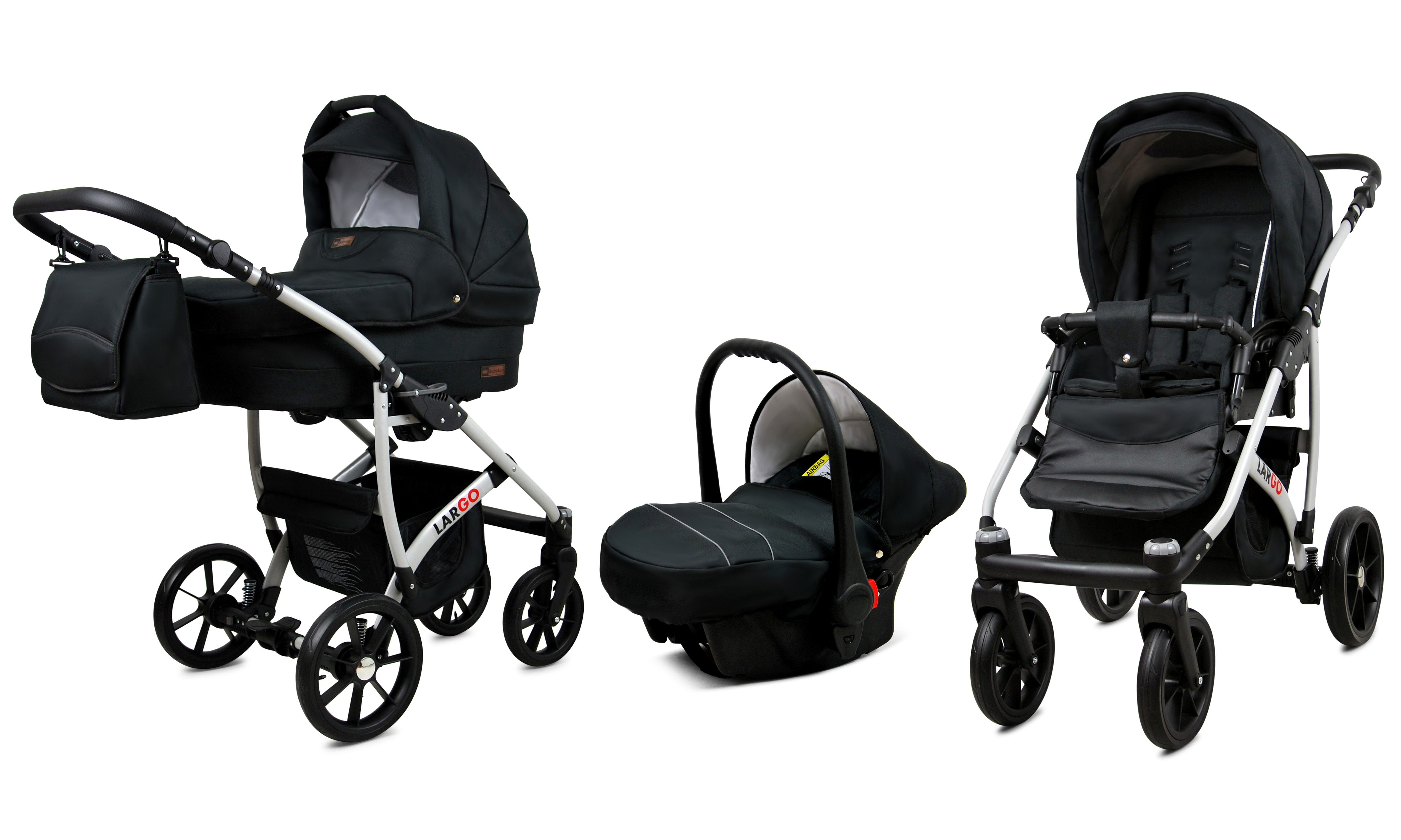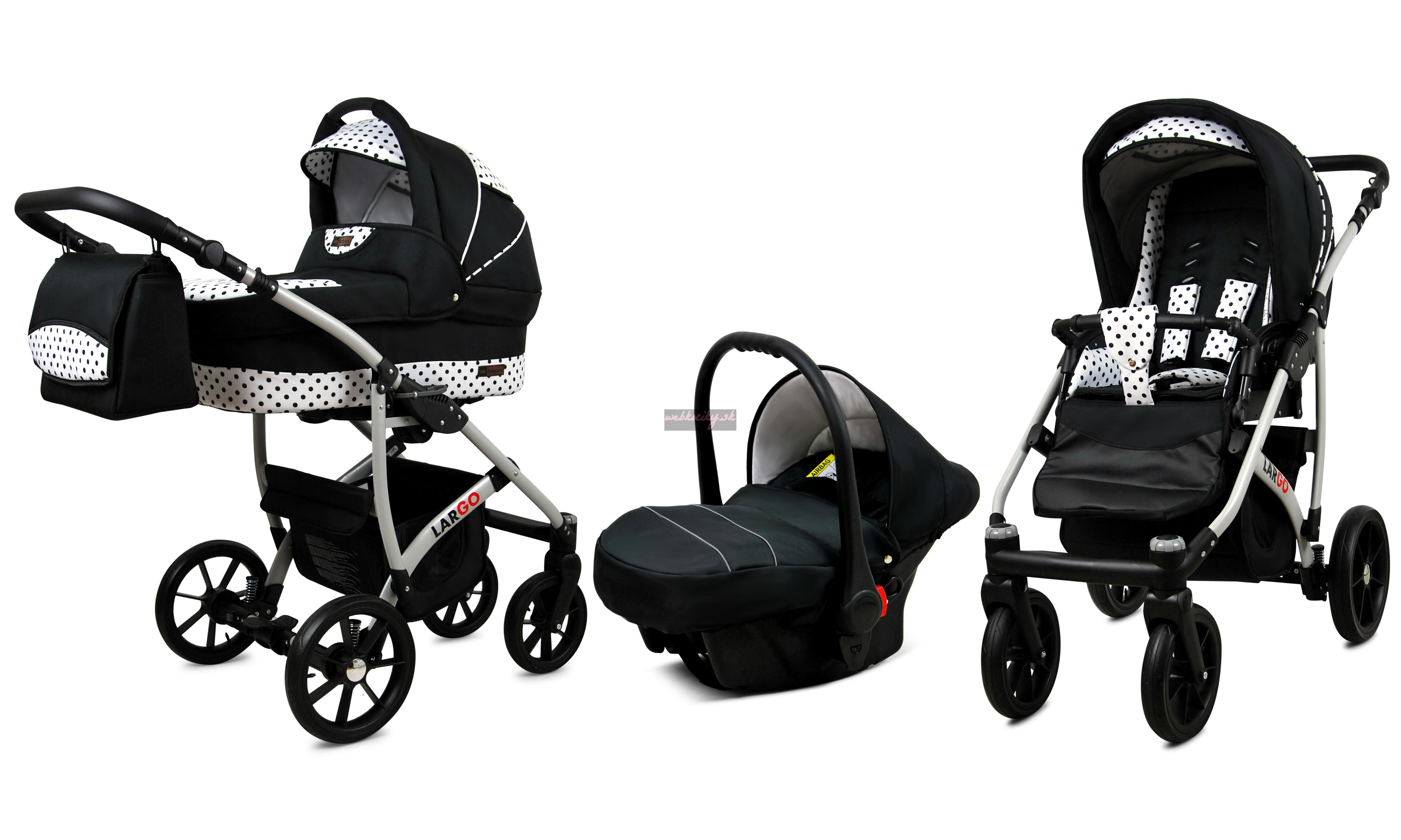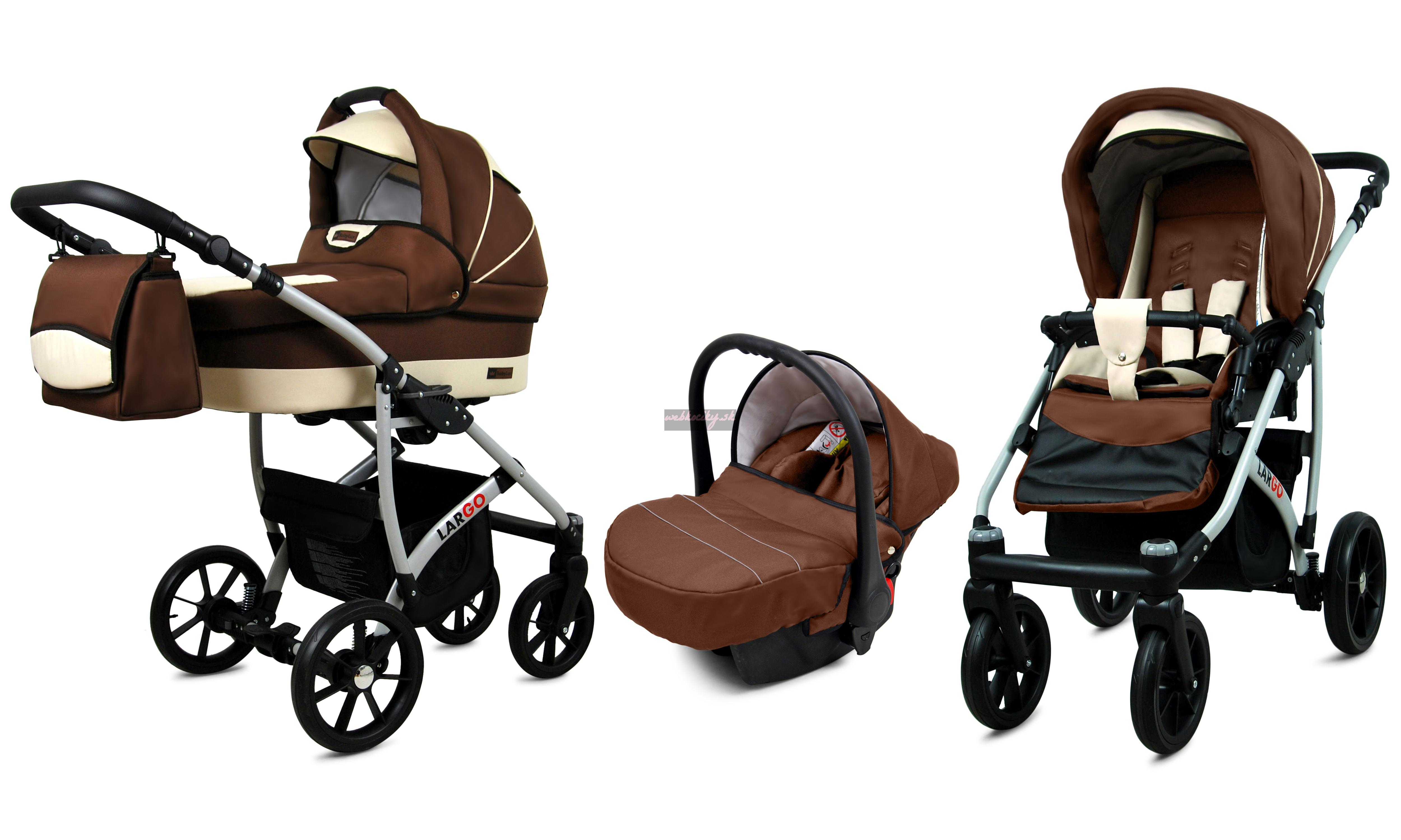 Nová kolekcia kočíkov Largo má pevnú konštrukciu z kvalitných materiálov. Kožené čalúnenie a detaily v kombinácii s precíznou farebnou tkaninou, ktorá podčiarkuje jedinečnosť a atraktívny dizajn tejto kolekcie. Pohodlná a veľká nákupná taška je taktiež veľmi praktická v každodenných situáciách.