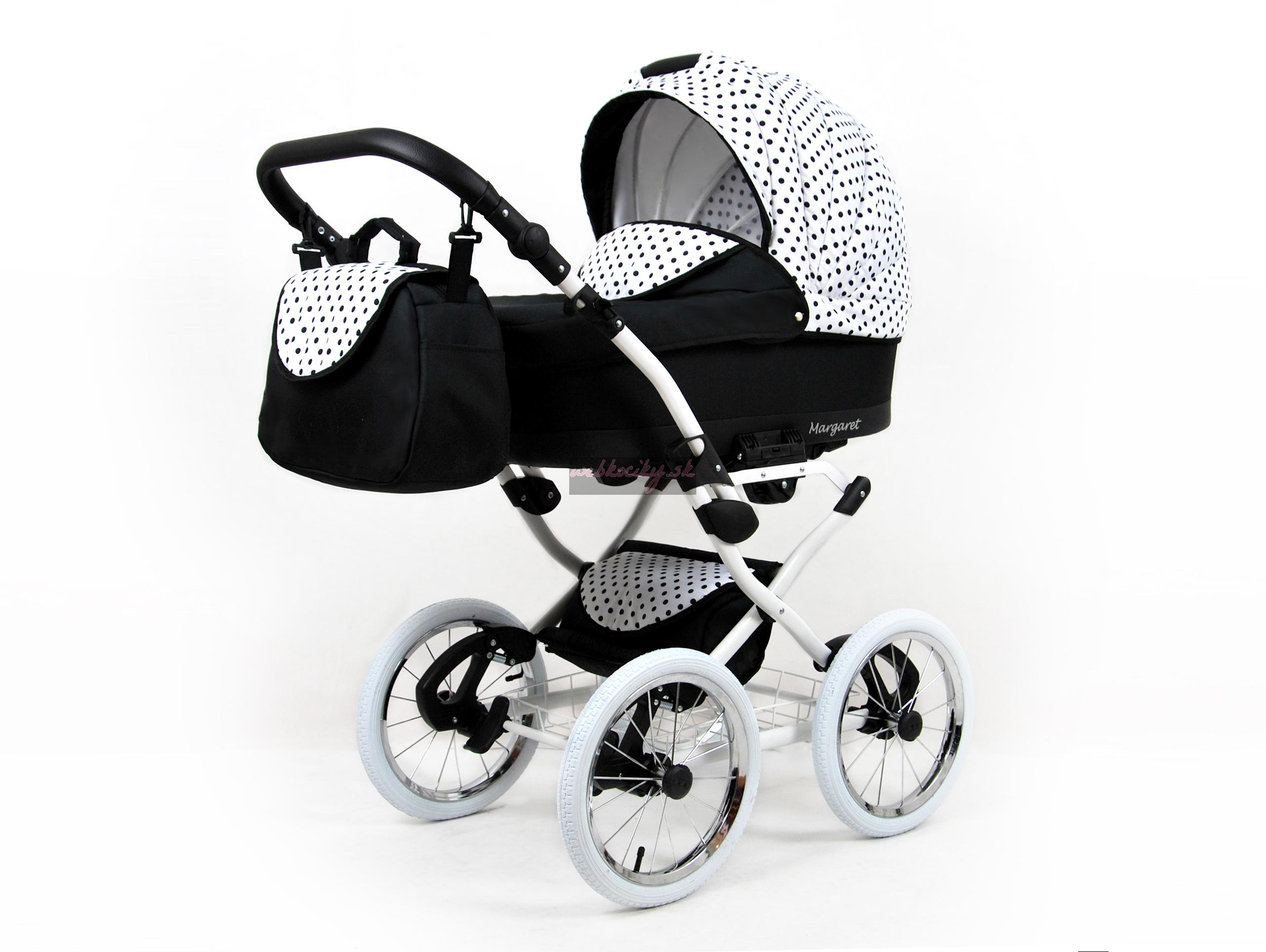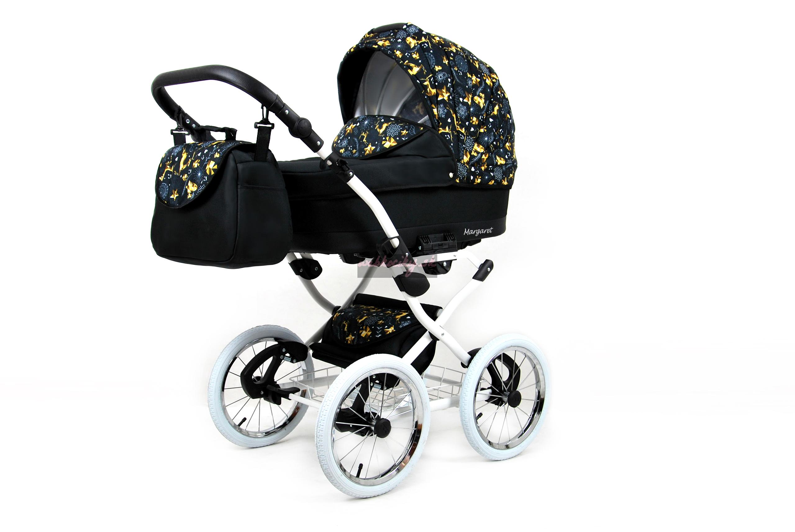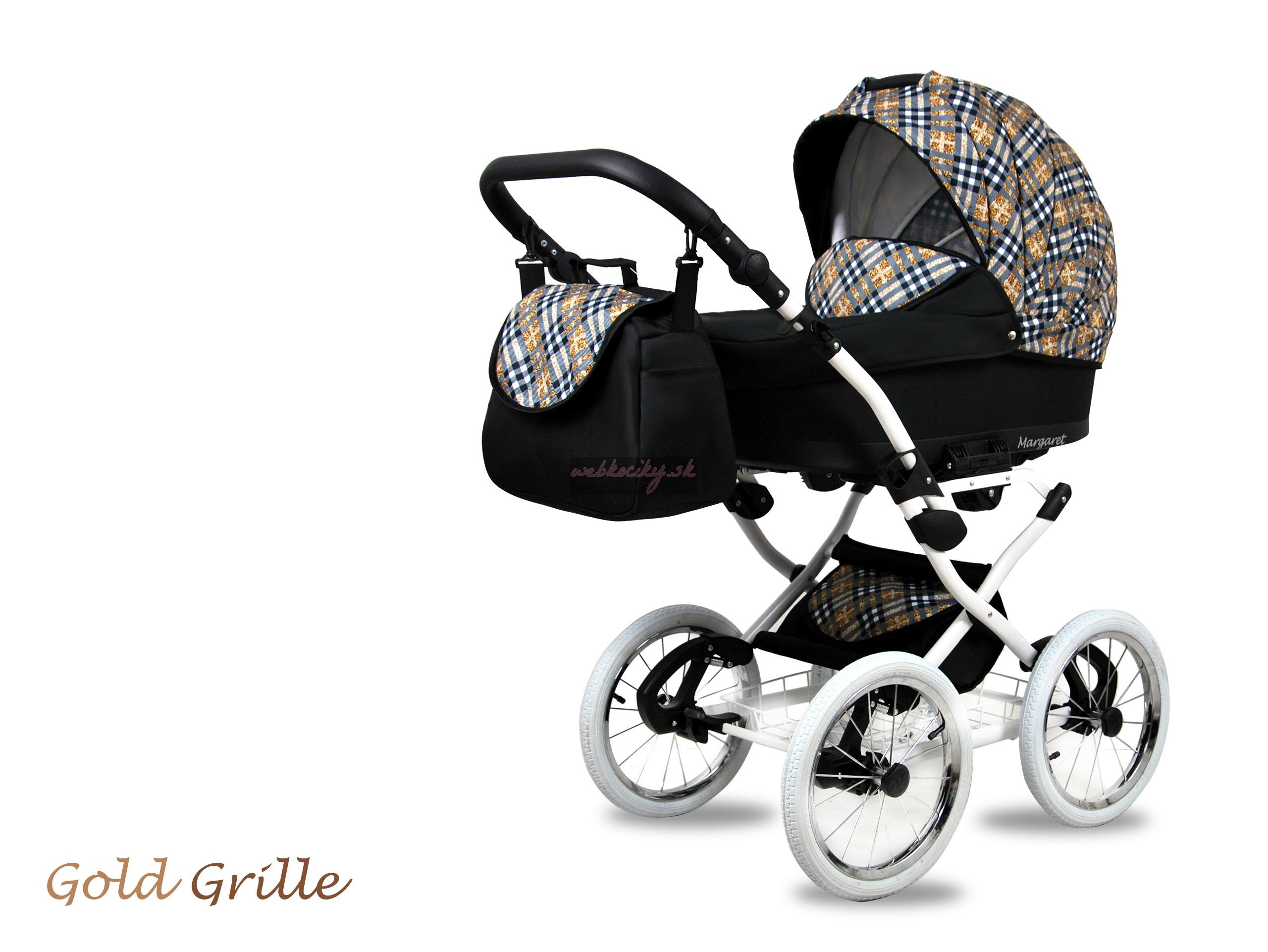 Nová kolekcia kočíkov Margaretmá pevnú konštrukciu z kvalitných materiálov. Kožené čalúnenie a detaily v kombinácii s precíznou farebnou tkaninou, ktorá podčiarkuje jedinečnosť a atraktívny dizajn tejto kolekcie. Pohodlná a veľká nákupná taška je taktiež veľmi praktická v každodenných situáciách.
