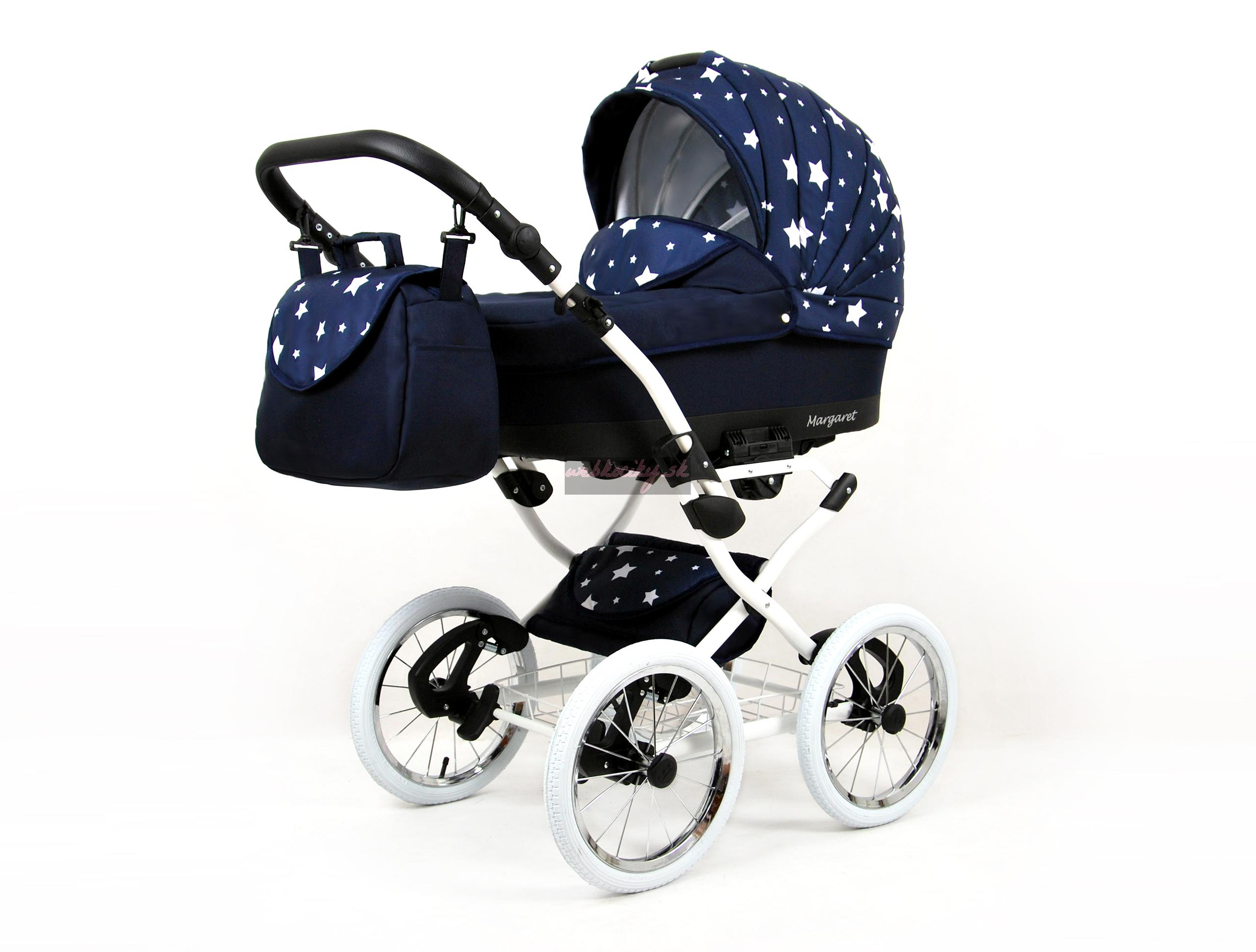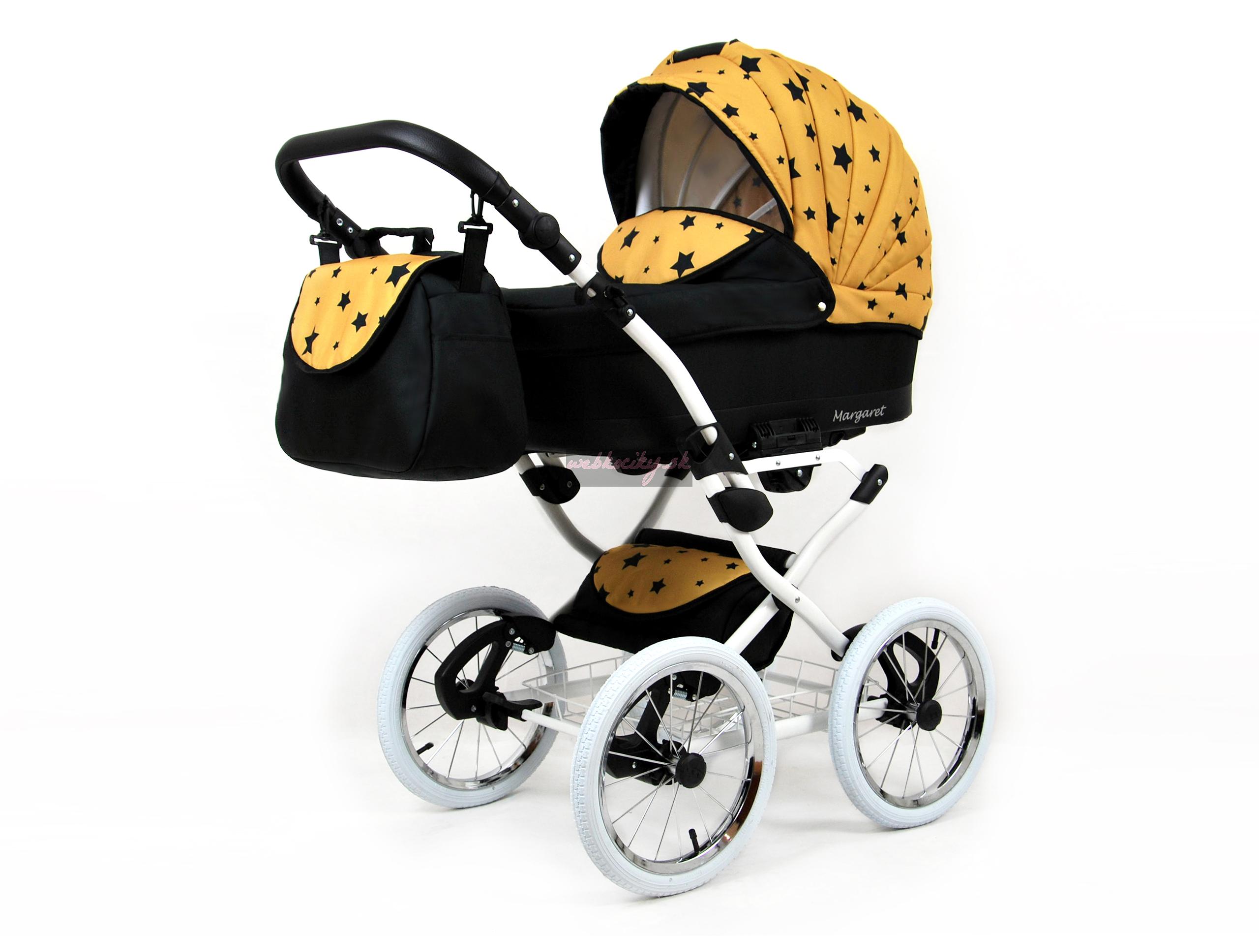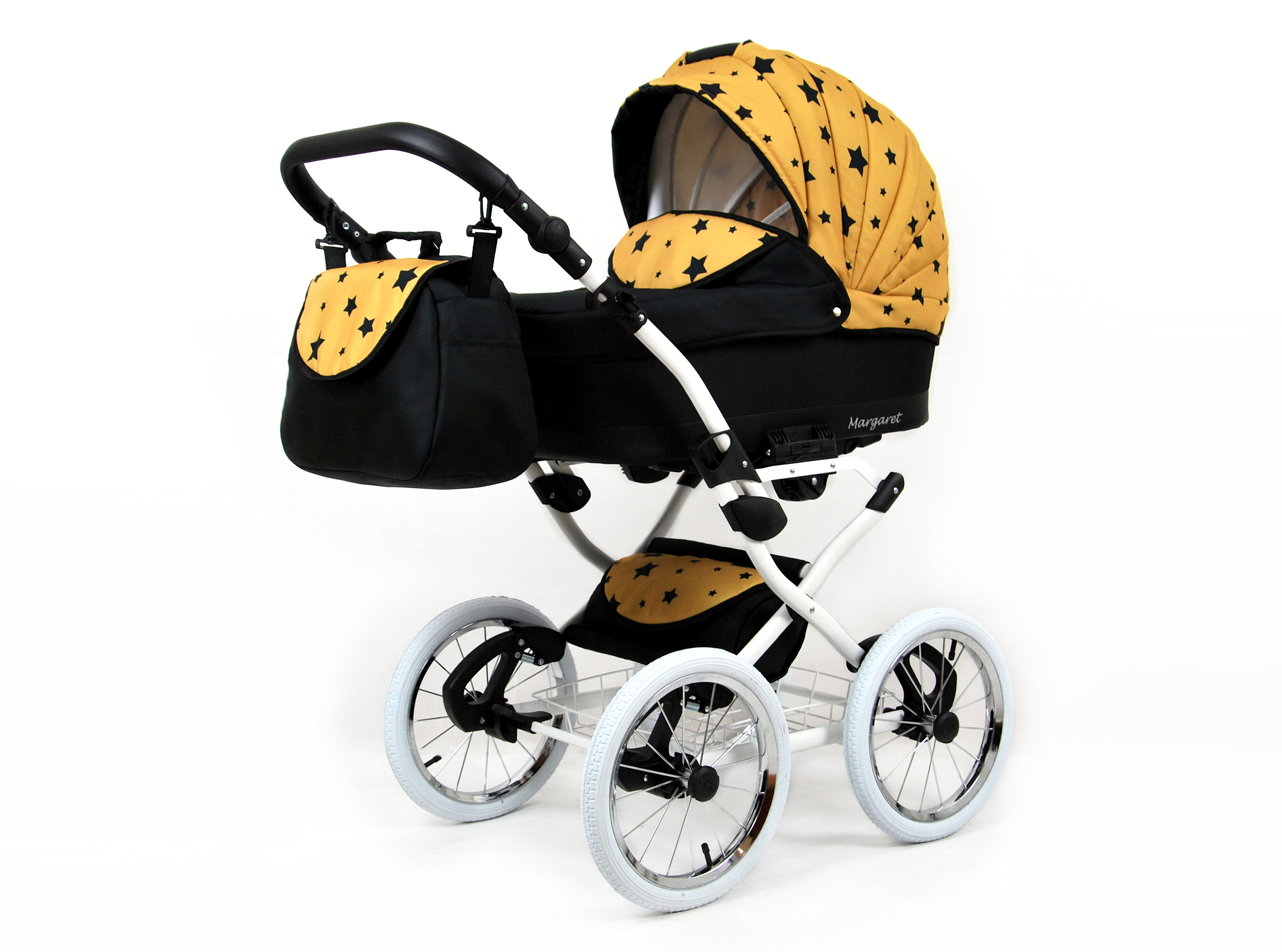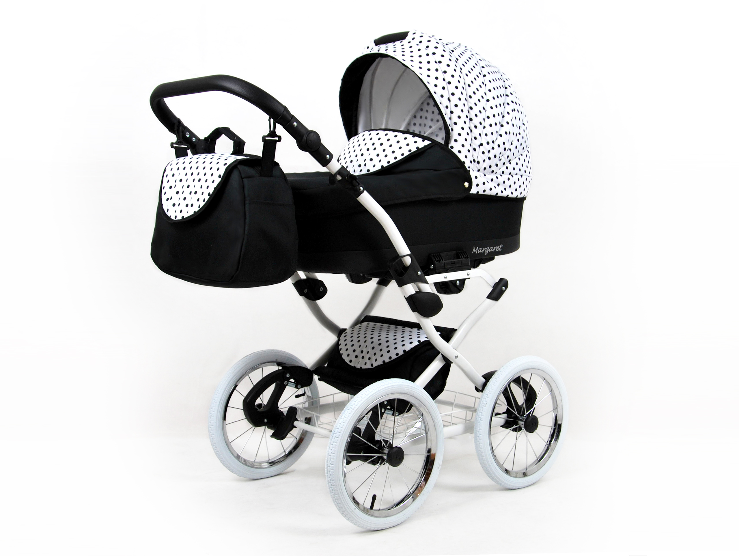 Nová kolekcia kočíkov Margaretmá pevnú konštrukciu z kvalitných materiálov. Kožené čalúnenie a detaily v kombinácii s precíznou farebnou tkaninou, ktorá podčiarkuje jedinečnosť a atraktívny dizajn tejto kolekcie. Pohodlná a veľká nákupná taška je taktiež veľmi praktická v každodenných situáciách.