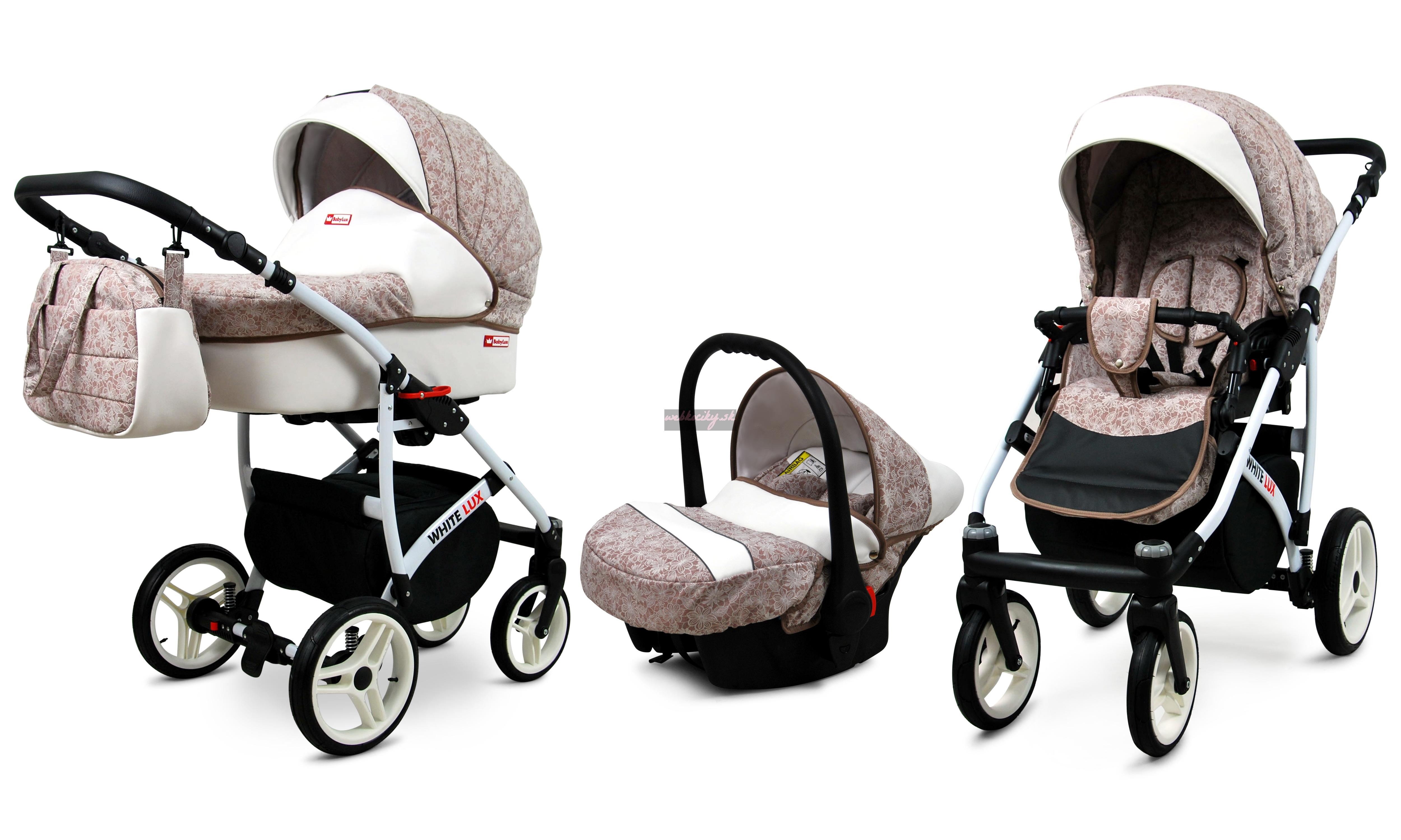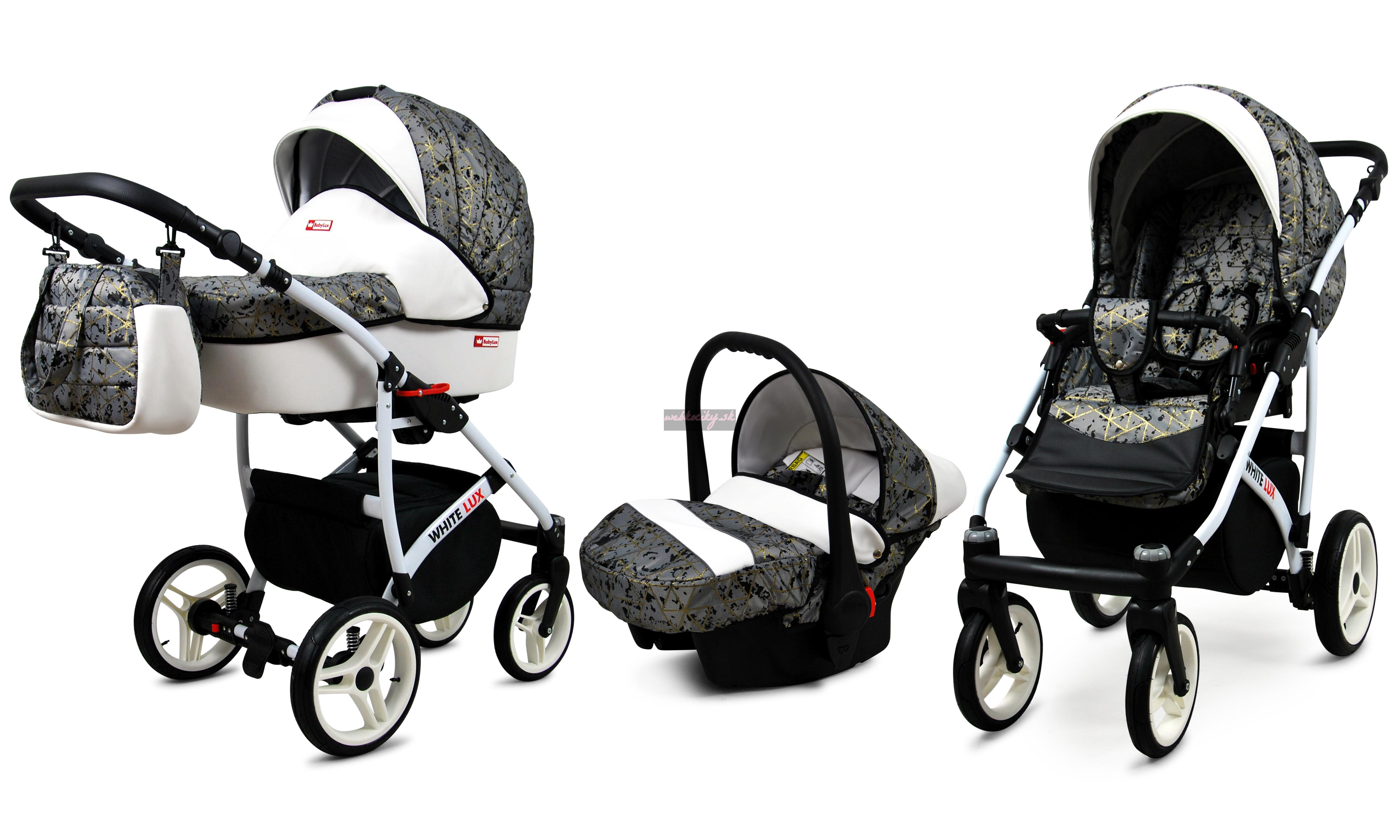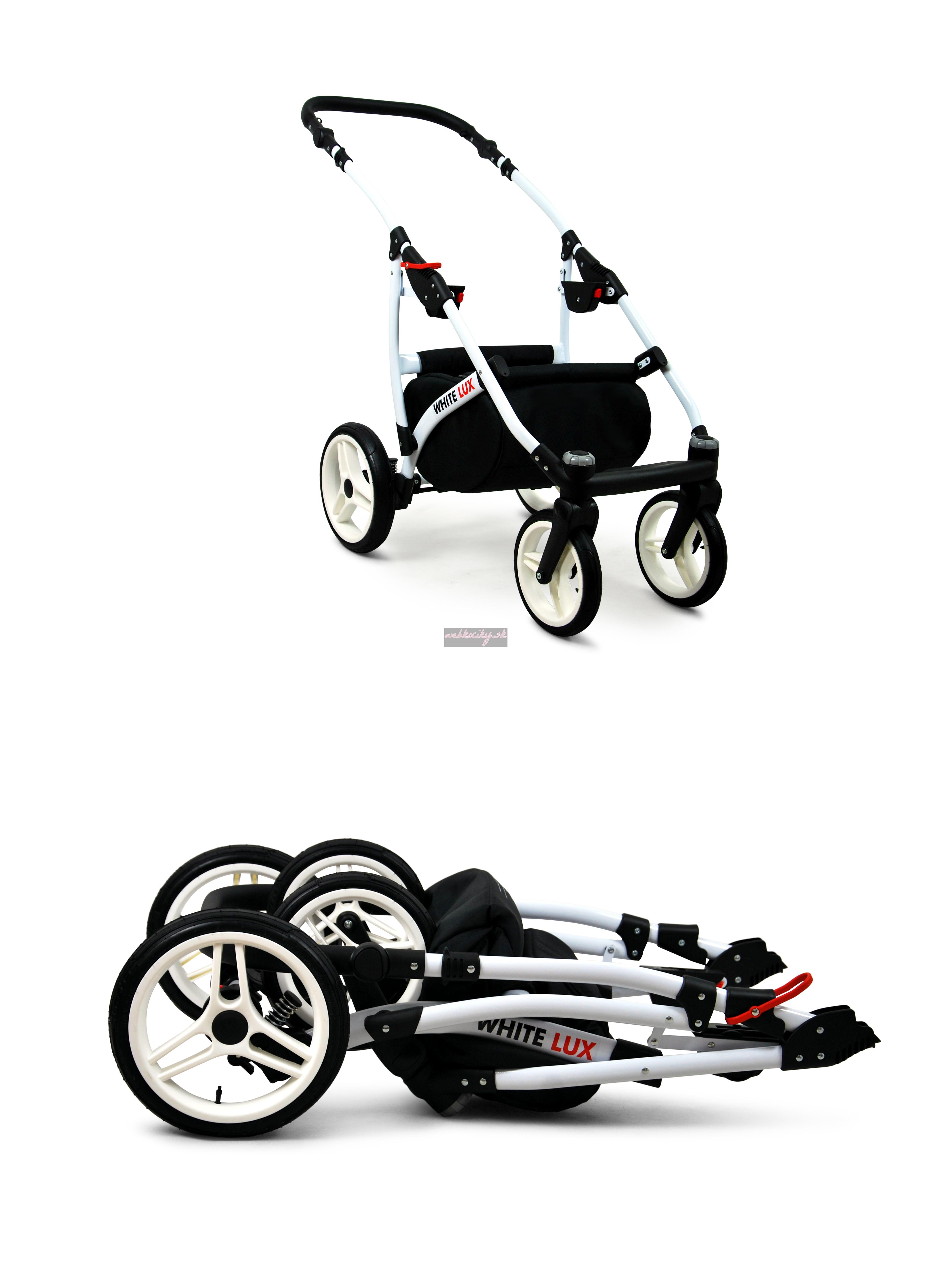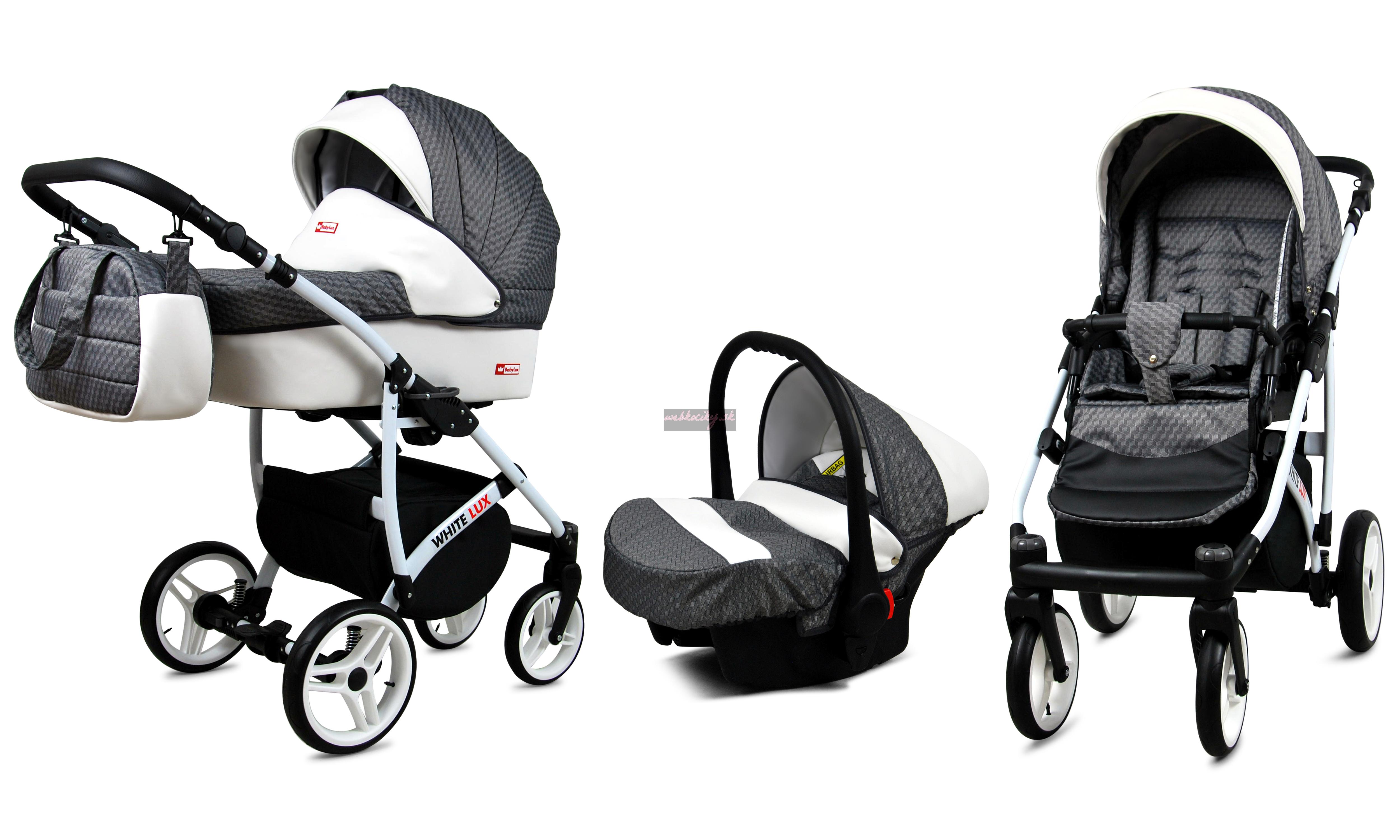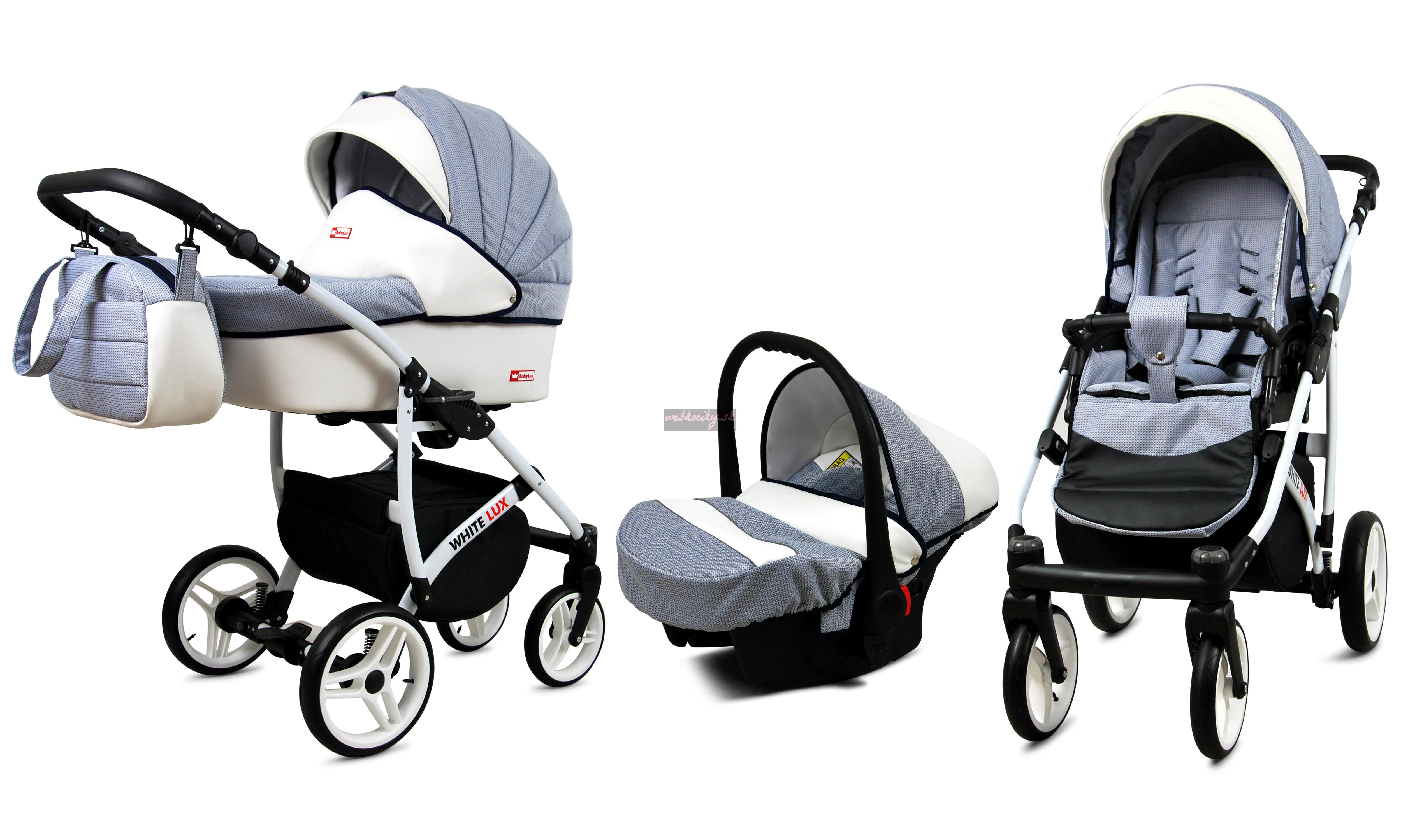 Nová kolekcia kočíkov White LUX má pevnú konštrukciu z kvalitných materiálov. Kožené čalúnenie a detaily v kombinácii s precíznou farebnou tkaninou, ktorá podčiarkuje jedinečnosť a atraktívny dizajn tejto kolekcie. Pohodlná a veľká nákupná taška je taktiež veľmi praktická v každodenných situáciách.