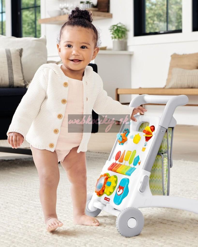 Chodítko možno jednoducho premeniť z hrania sa v sede, kde je aktívny panel na podložke, na režim aktívneho chodítka, na nákupný košík alebo kočík. Režim aktívneho chodítka podporuje prvé kroky dieťaťa, zatiaľ čo režim tlačenia pomáha udržať dieťa pri chôdzi v pokoji. Pomocou pútavých hier chodítko povzbudí rovnováhu Vášho dieťatka, jeho jemné motorické zručnosti, ktoré sú nevyhnutné pre rast. Prináša množstvo zábavy a učenia na niekoľko rokov.