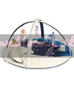 Prekrásna deka na hranie s nebeským motívom, plyšovým prešívaním a mäkučkým vankúšikom v tvare mesiačika s praktickými úchytmi na hračky na pohodlnejšiu hru na brušku. Odnímateľné detské zrkadlo v tvare padajúcej hviezdičky podporuje sebapoznávanie, zatiaľ čo päť závesných hračiek, z toho jedna hudobná, zapojí zmysly vášho dieťatka vďaka hudbe, zvukom, textúram a ďalším prvkom na skúmanie.