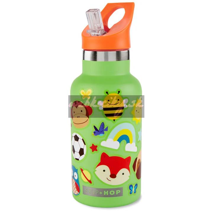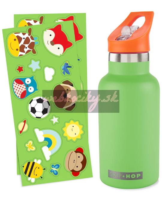 SKIP HOP Fľaša s nálepkami so slamkovým náustkom nerezová zelená 380 ml, 4r+