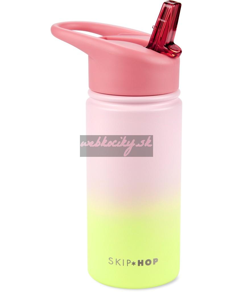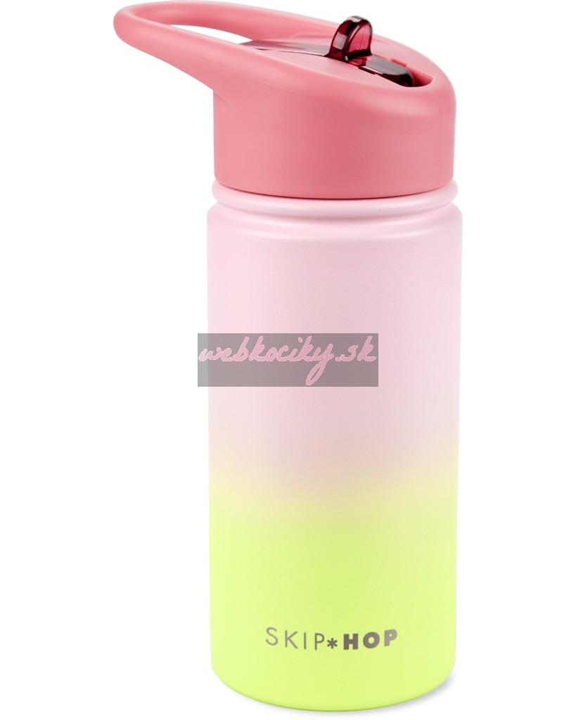 SKIP HOP Fľaša so slamkou nerezová Wander - ombré pink, 450ml