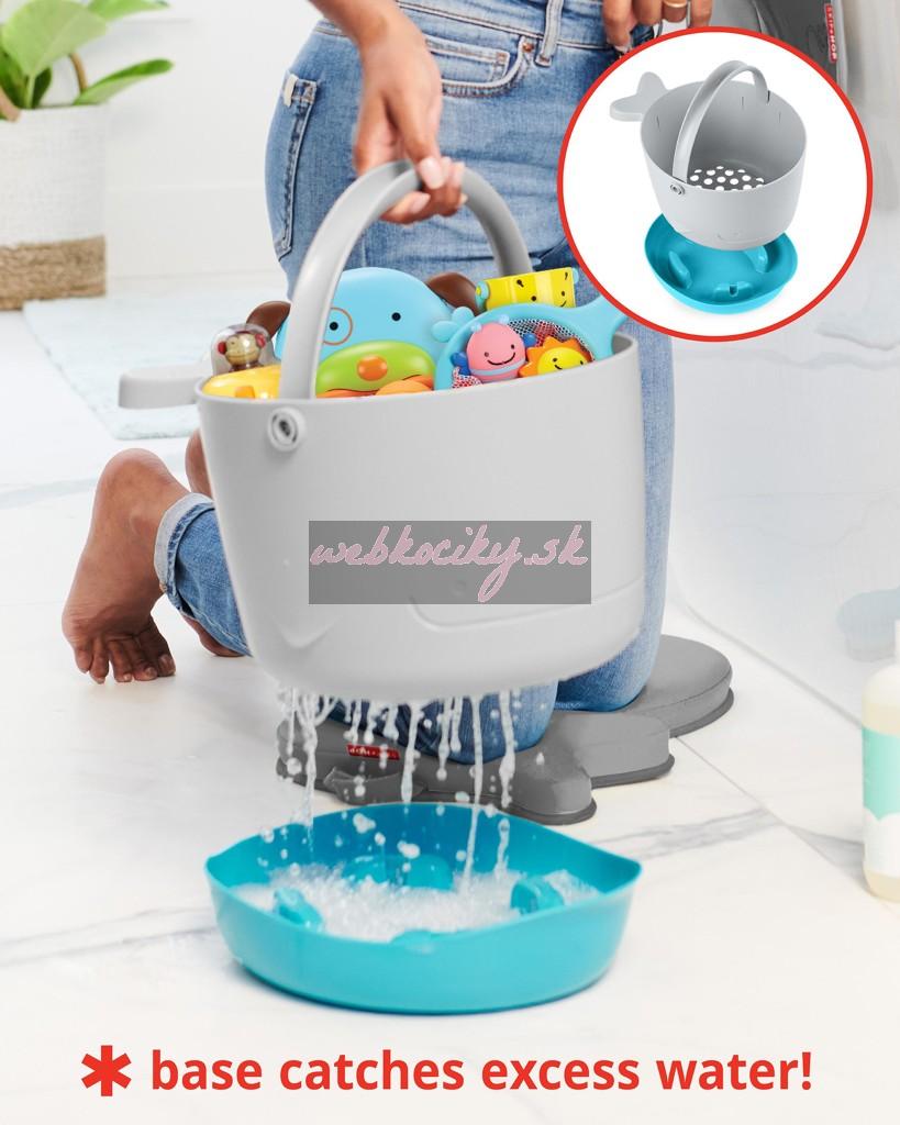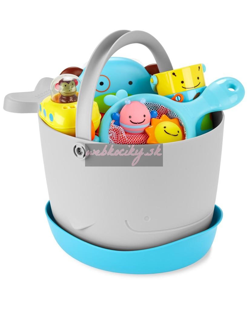 Súpravu hračiek do kúpeľa s vedierkom (v nádhernom zvieracom dizajne) si rodičia aj deti zamilujú. Vďaka veľkým odtokovým otvorom a samostatnej stojatej základni na zachytávanie prebytočnej vody je sušenie a skladovanie hračiek bezproblémové.