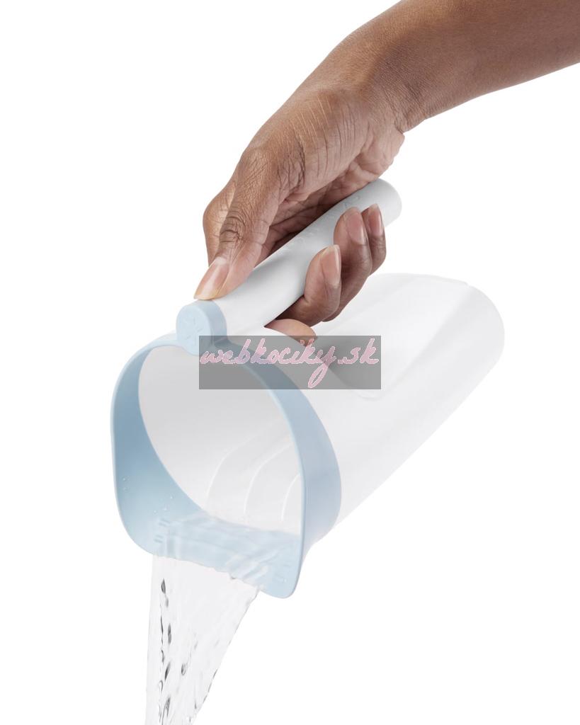 Pohár na oplachovanie vody Wave prináša inováciu pri kúpaní dieťaťa. Zabraňuje, aby sa do citlivých detských očiek a ušiek dostala voda. Vďaka vnútorným priehradkám je tok vody ustálený, čím sa zabezpečí rýchle oplachovanie. Mäkká guma prirodzene kopíruje tvar čela dieťaťa. Ľahká rukoväť umožňuje držať pohár v jednej ruke zatiaľ čo v druhej držíte bábätko.