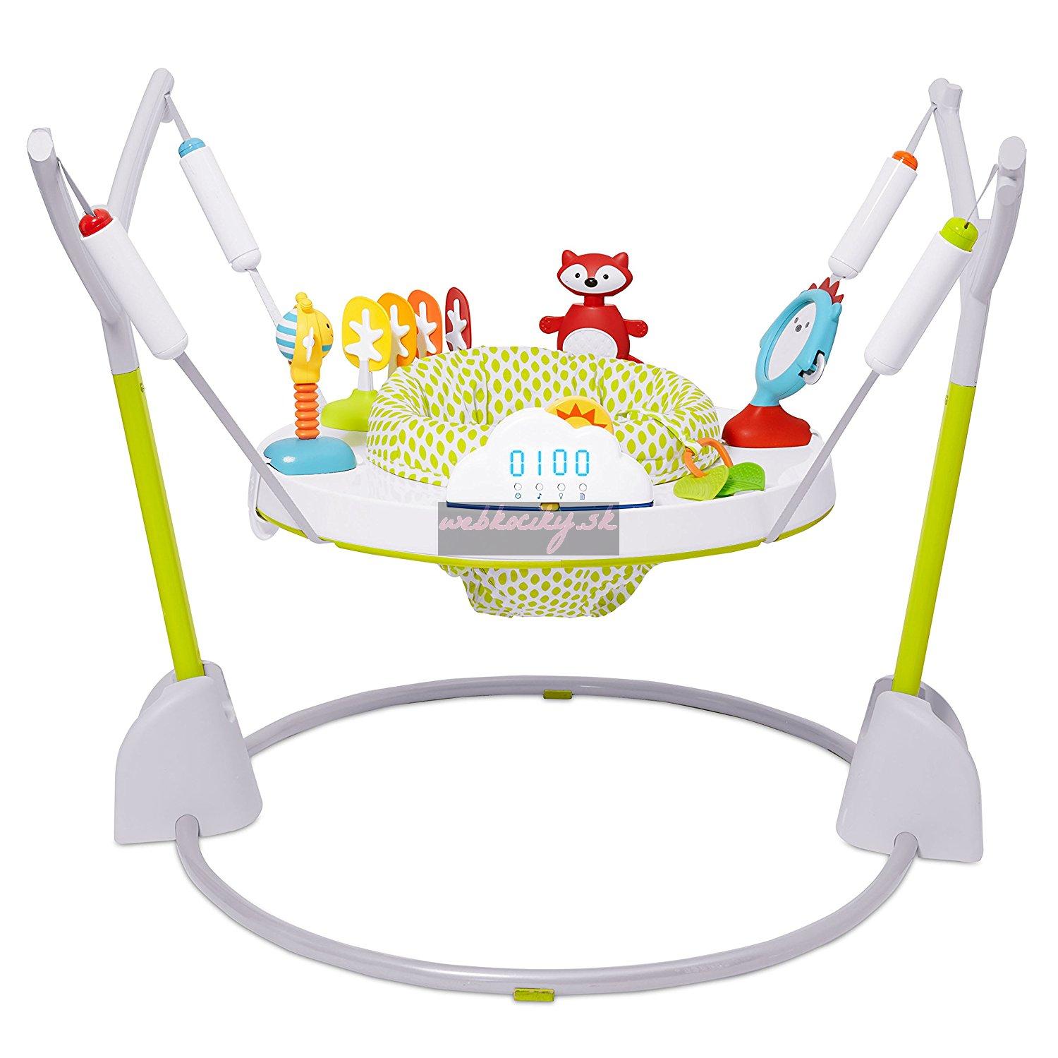 Pomocou funkcie merania skokov vaše dieťatko zistí, že aj za hranie bude odmeňované a to farebnými svetlami, hudbou a potleskom pri stom skoku! Je vybavený rotujúcim 360° sedadlom, takže dieťatko môže preskúmať každú stranu. Pohyblivé hračky a clip-on podporujú vývoj a spestrujú aktivitu dieťatka. Keď sa dieťatko dohrá jednoducho skákadlo zložte, je ľahko skladovateľné a perfektné na presúvanie.
