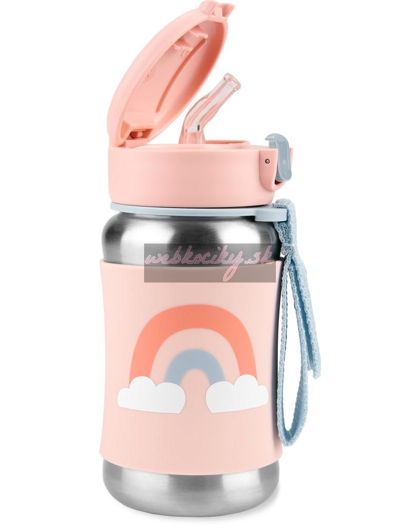 SKIP HOP Spark Style Fľaša so slamkou na vodu nerez Dúha 12m+