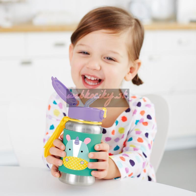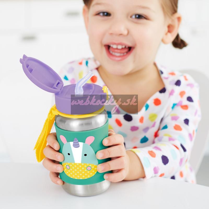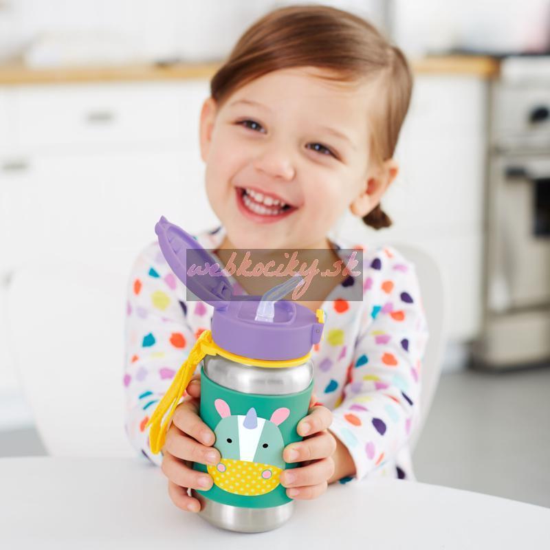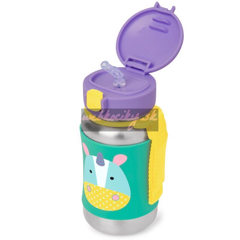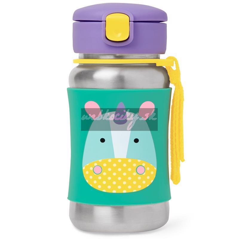 SKIP HOP Zoo Fľaša so slamkou na vodu nerez Jednorožec 12m+
