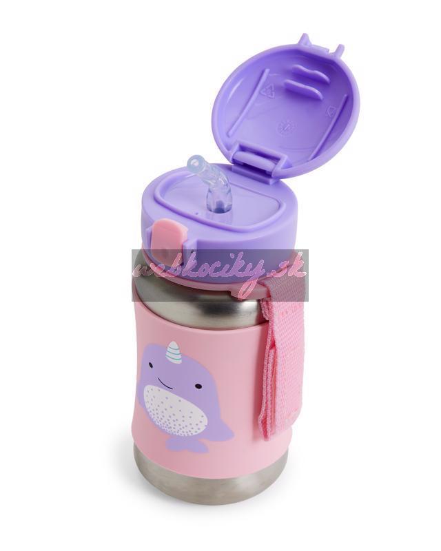SKIP HOP Zoo Fľaša so slamkou na vodu nerez Narval 12m+