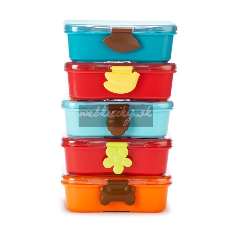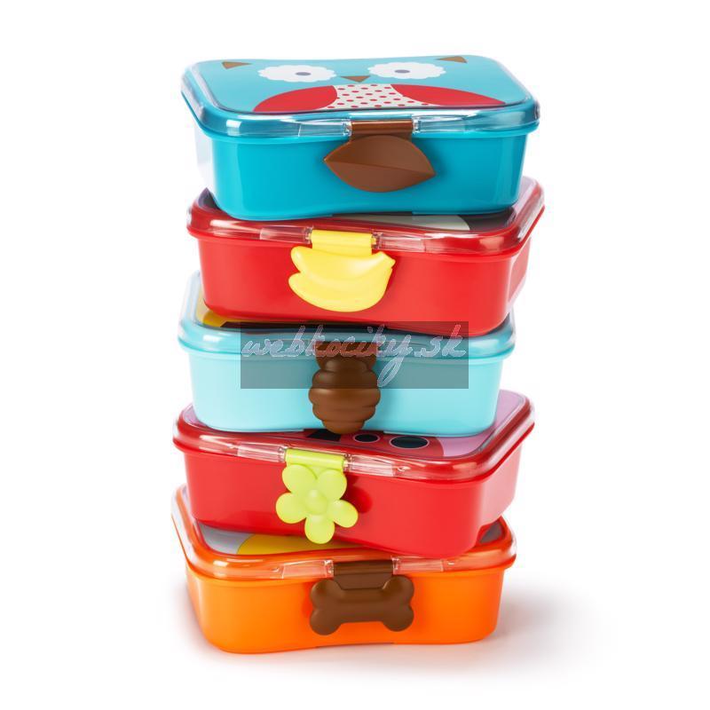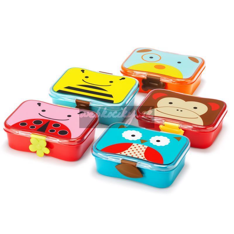 Krásna krabička na desiatu v štýle Skip Hop, v dizajne Zoo kolekcie, skladá sa z 2 dielov: krabička na desiatu s nepriepustným vrchnákom a menšia krabička na piškóty.