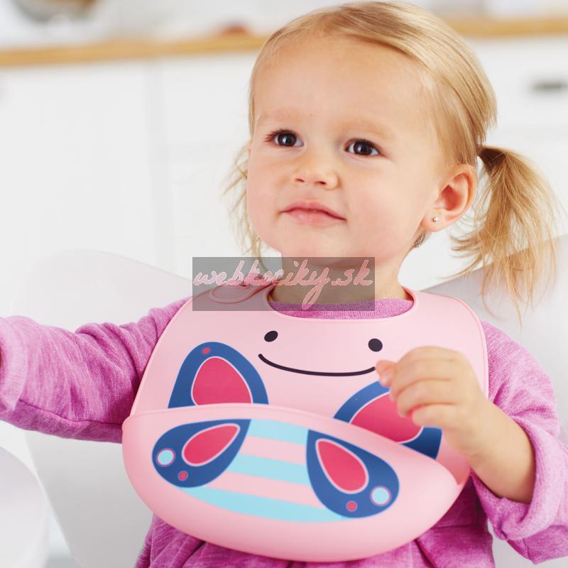 Silikónový podbradník Skip Hop z kolekcie Zoo v tvare zvieratka. Podbradník zachytí padajúce jedlo od nezbedných jedákov.