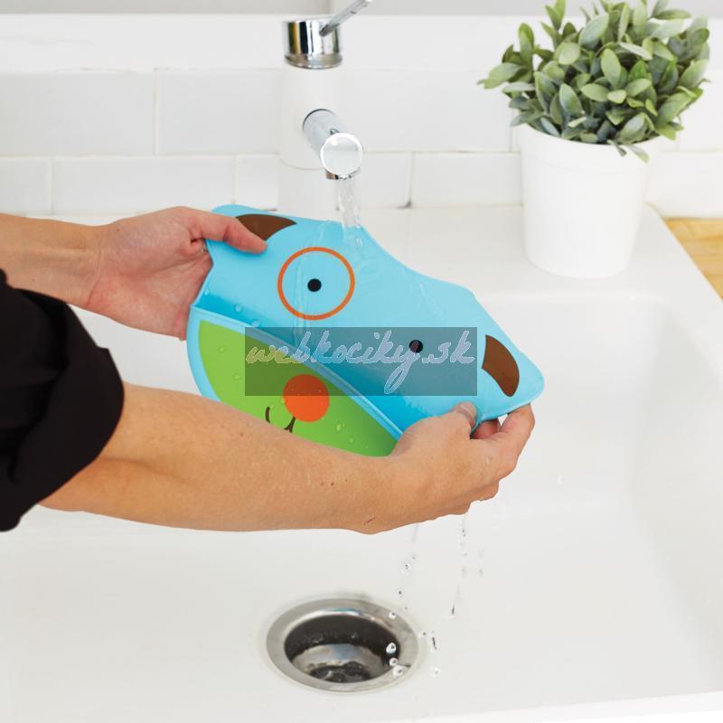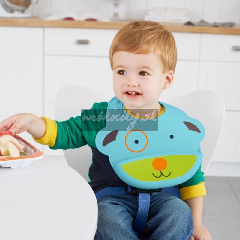 Silikónový podbradník Skip Hop z kolekcie Zoo v tvare zvieratka. Podbradník zachytí padajúce jedlo od nezbedných jedákov.