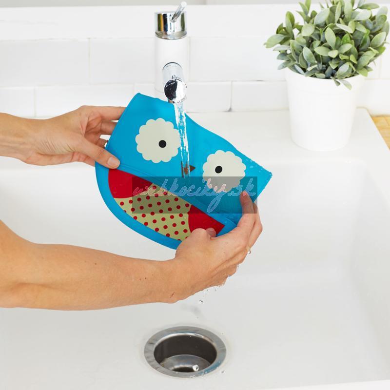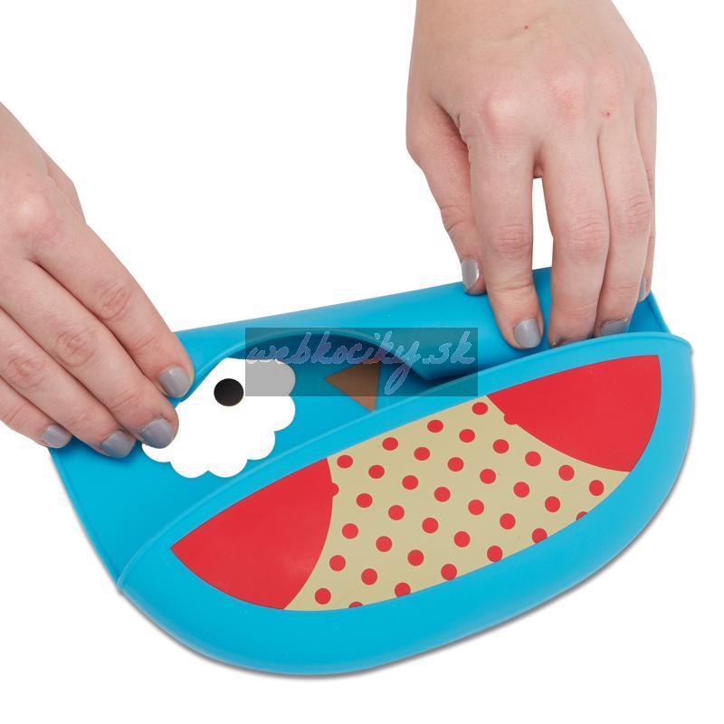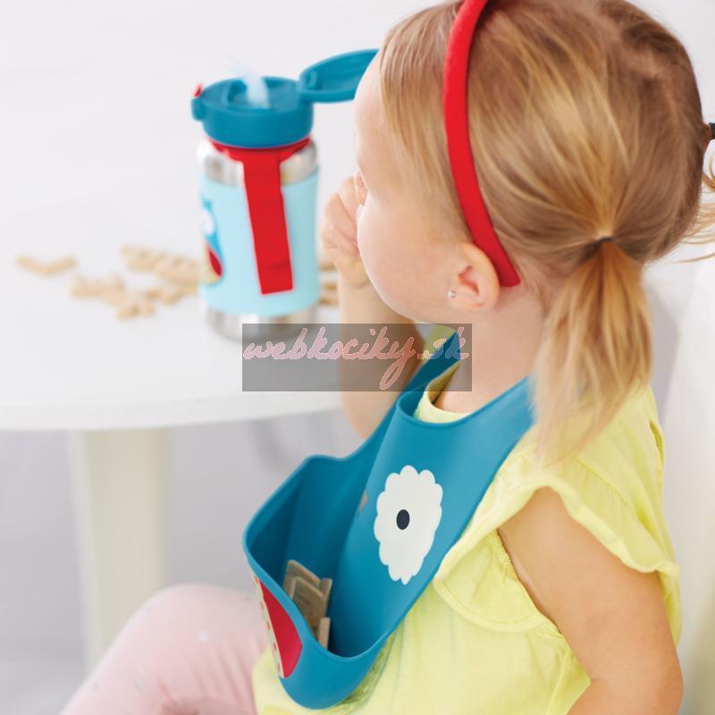 Silikónový podbradník Skip Hop z kolekcie Zoo v tvare zvieratka. Podbradník zachytí padajúce jedlo od nezbedných jedákov.