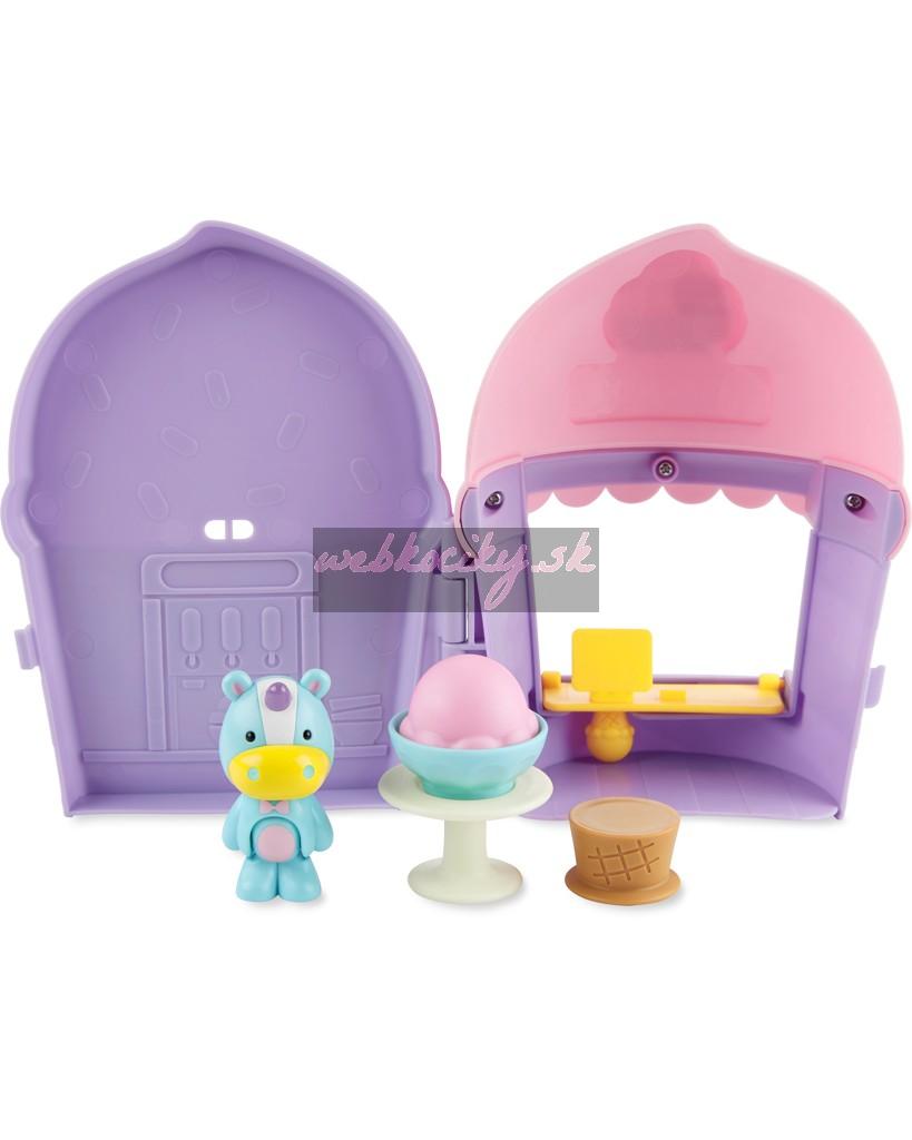 Ponúknite sa dobrotami vo veselej zmrzlinárni. Táto sladká 6-dielna hracia súprava, nabitá všetkým, čo vaše dieťatko potrebuje na zábavu, obsahuje pohyblivú figúrku jednorožca, zmrzlináreň s pokladňou, ktorú možno premeniť na servírovací pult, taburetku, stôl, misku a samozrejme zmrzlinu.