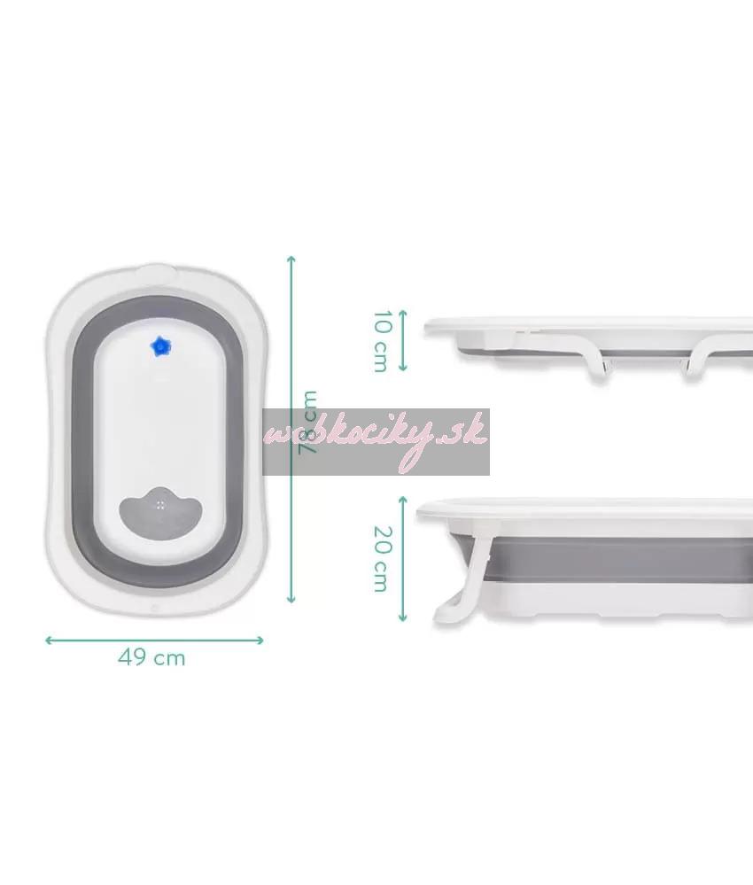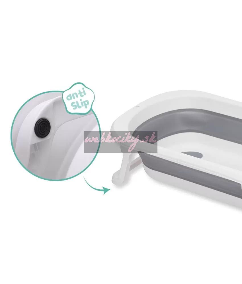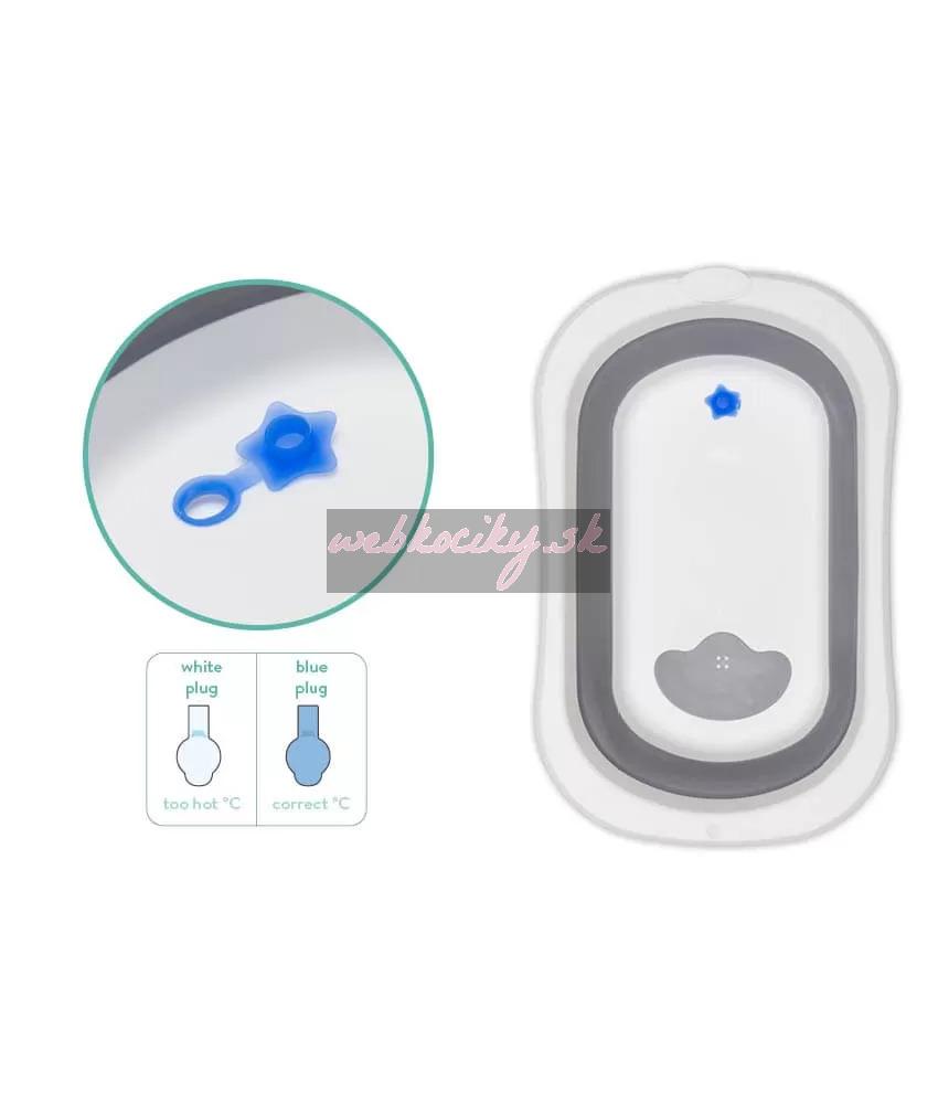 Skladacia detská vanička je veľmi praktická vďaka svojmu inovatívnemu skladaciemu mechanizmu. Vďaka tomu sa dá ľahko zložiť a tiež rýchlo znovu použiť. Vďaka indikátoru teploty vo výpustnej zátke môžete zmenou farby na prvý pohľad zistiť, či je voda ešte príliš horúca. Protišmykový povrch vo vani pre bezpečné státie.