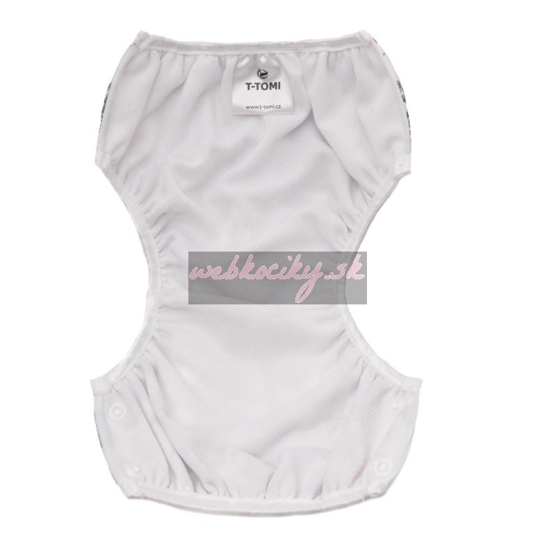 Plienkové plavky T-TOMI v modernom nadčasovom dizajne sú určené pre plávanie bábätiek od 5 do 12 kg. Tieto plavky sú vhodné ako pre novorodencov tak aj pre batoľatá a to vďaka jednoduchému systému patentiek, pomocou ktorých sa požadovaná veľkosť ľahko nastavuje. Vnútorná strana plienkových plaviek je vybavená praktickou sieťkou, ktorá zachytí prípadné "nehody" bábätka vo vode. Veľkou výhodou týchto plienkových plaviek T-TOMI je ich ekonomická stránka oproti jednorazovým plienkovým plavkám.
