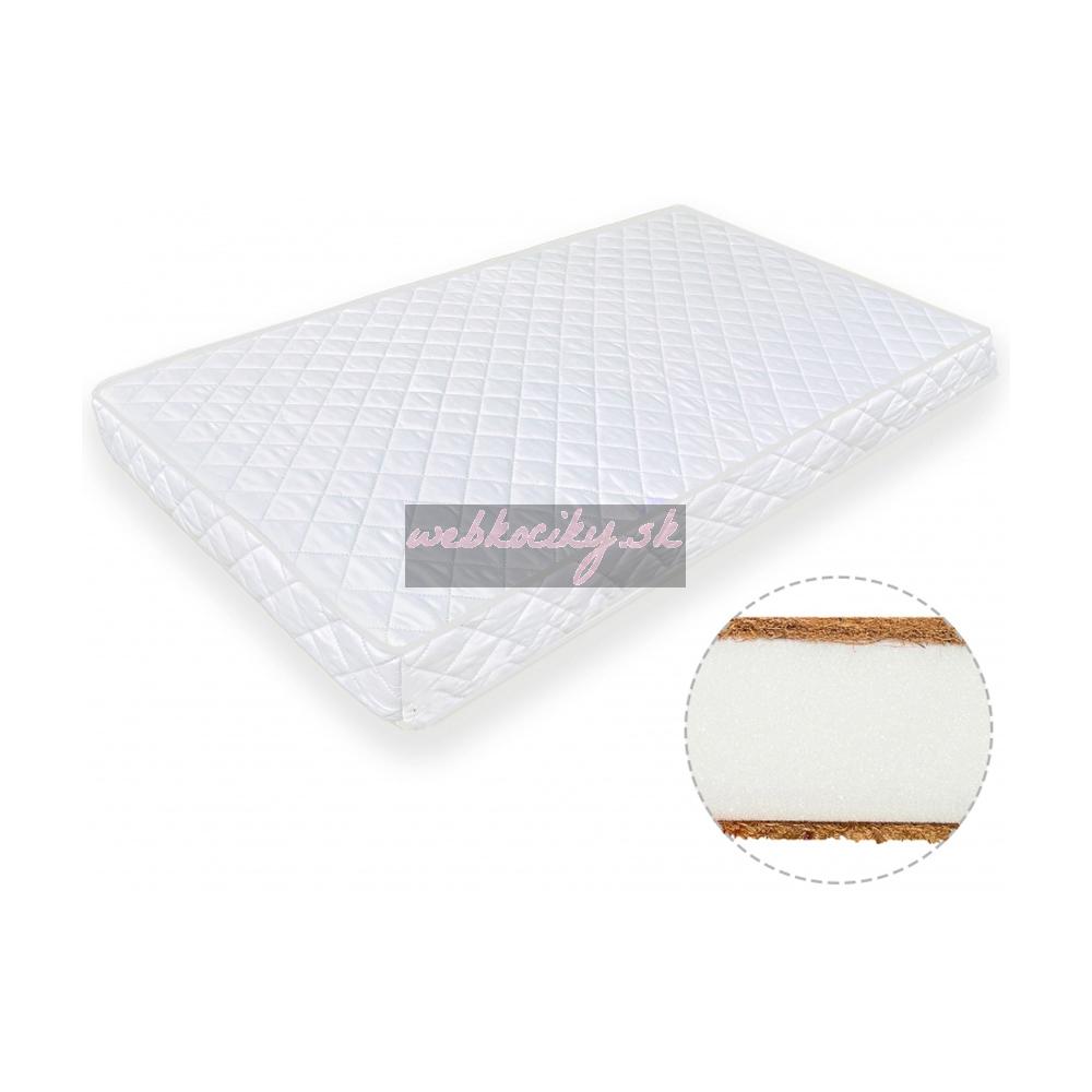 Praktický trojvrstvový matrac. Výplň: 2x vložka z prírodného kokosového vlákna + molitánové jadro.