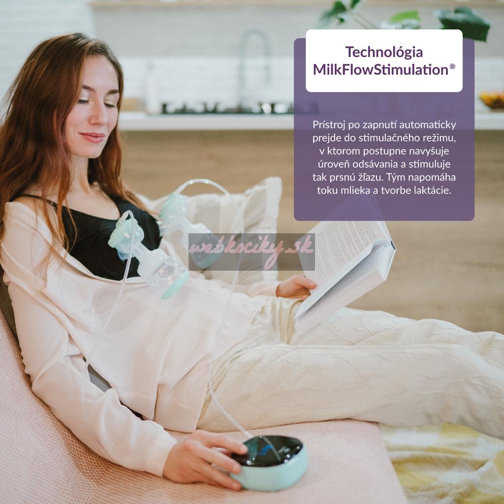 - vlastnosti a funkcie: bez BPA, 2fázové odsávanie, možnosť nastavenia intenzity odsávania - 9 úrovní, 3 režimy – odsávanie, stimulácia, masáž, technológie MilkFlowStimulation®, časovač pre automatické vypnutie, zásobník na mlieko 2× 150 ml, výdrž 150 minút, elektrický pohon, zamedzenie spätného toku, LED displej s dotykovými tlačidlami, tichý chod, ergonomický dizajn, nízka hmotnosť