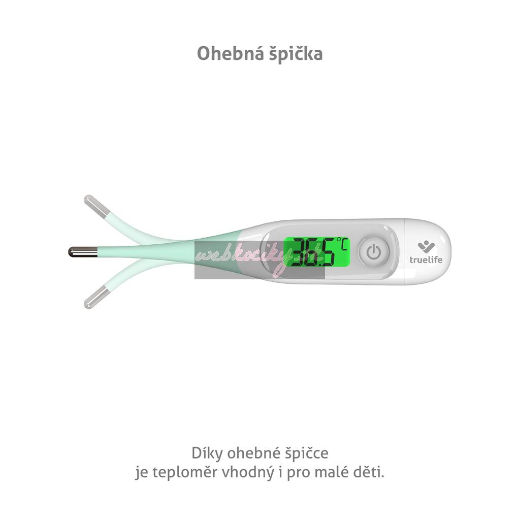 - Ohybná špička: ohybný hrot teplomera, ktorý bol navrhnutý s maximálnou starostlivosťou, zaisťuje pohodlie počas merania, takže je vhodný aj pre najmenšie detičky.
