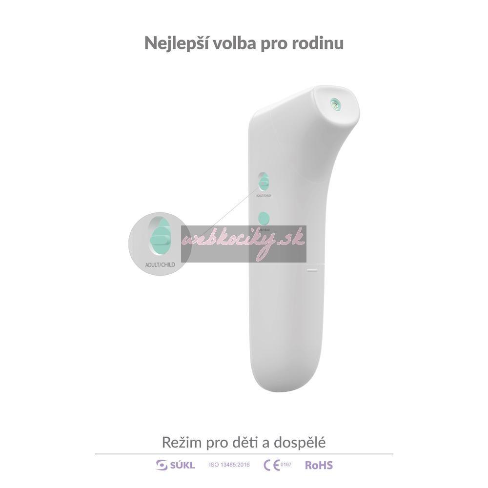 Na teplomere si môžete zvoliť medzi zvukovým sprievodom merania alebo tichým módom, ktorý je vhodný pre meranie teploty napríklad spiacich detí.