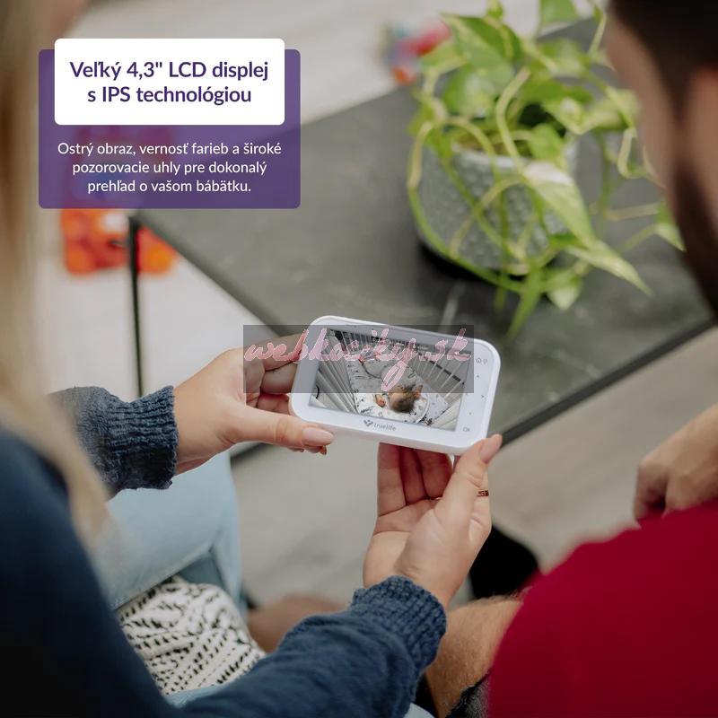 Rodičovská jednotka je vybavená 4,3" LCD IPS displejom. IPS technológia nielen vylepšuje vernosť farieb, ale tiež poskytuje širšie pozorovacie uhly.