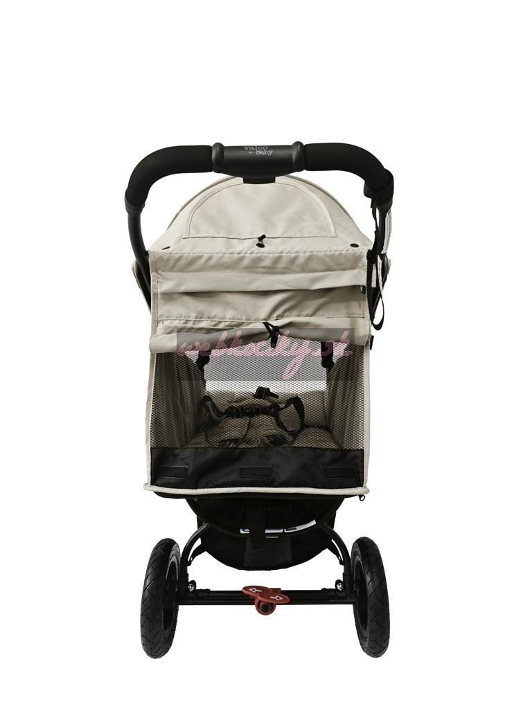 - Zadná časť opierky obsahuje dve praktické vrecká, túto časť je možné navyše zrolovať, čím sa odkryje sieťované okienko, vďaka ktorému môže vzduch v kočíku cirkulovať bez obmedzenia aj v teplejších dňoch.