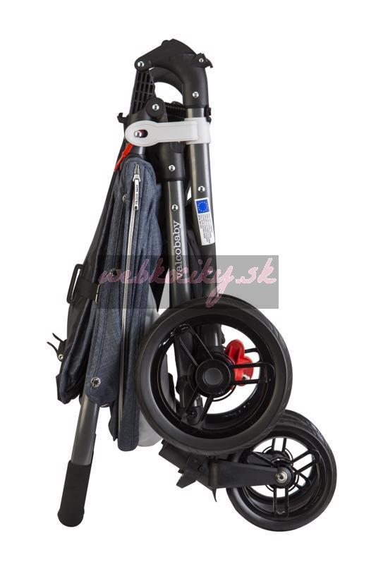 Týmto spôsobom môžu byť kolesá ľahko uložené alebo prepravované v batožine, podstatne sa tak zmenší celkový objem zloženého kočíka.