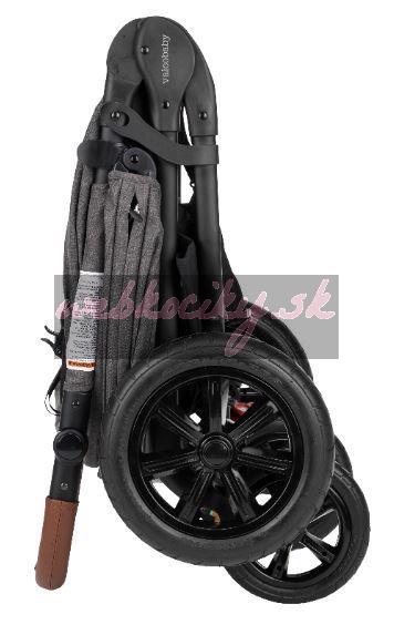 Týmto spôsobom môžu byť kolesá ľahko uložené alebo prepravované v batožine, podstatne sa tak zmenší celkový objem zloženého kočíka.