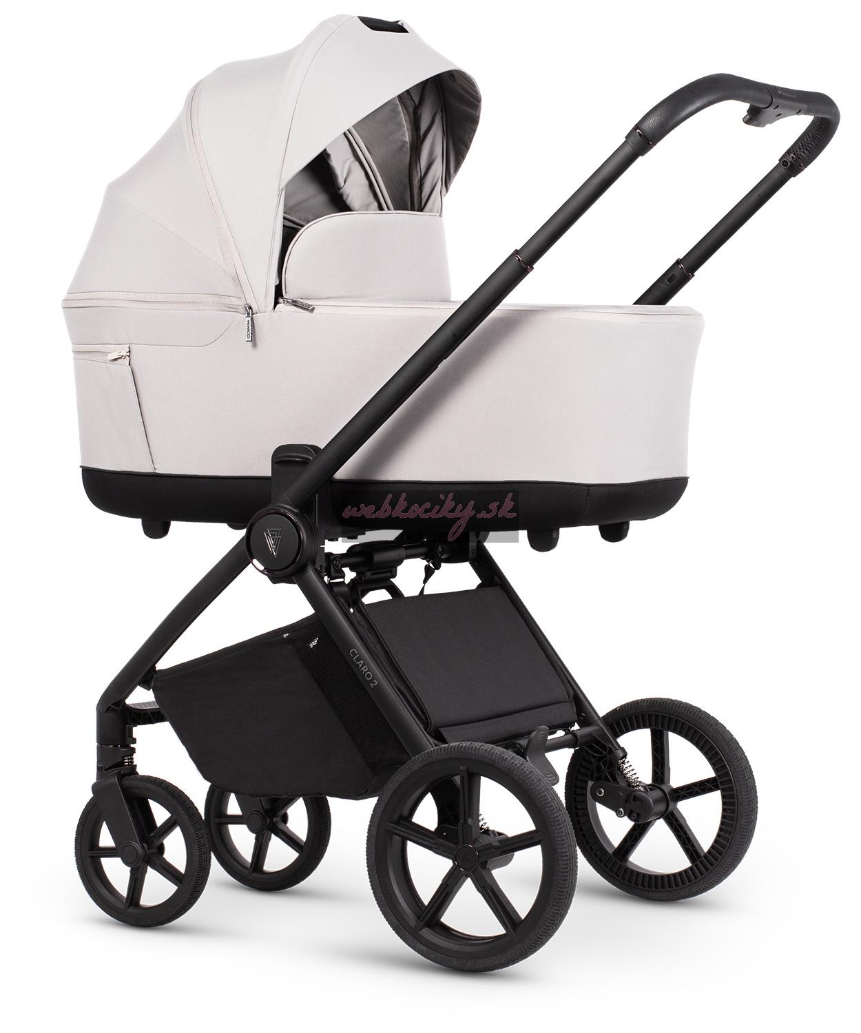 Model Claro 2 má malé, svižné gélové kolieska, ktoré zaručujú veľkú odolnosť a dobré odpruženie. Dôraz na detail, krásne ozdoby a jemný vzor vyrazený vo vnútri korbičky znamenajú, že s týmto kočíkom vyrazíte do mesta s hrdosťou. Pri kočíku Claro 2 však nejde len o estetický dizajn, ale predovšetkým o konštrukciu, ktorá zaistí bezpečnosť vám aj vášmu dieťatku pri každej prechádzke. Postarali sme sa o všetko, vrátane odraziek v športovej sedačke a vaničke, aby sme vám zaručili pokojné vychádzky a príjemné spomienky.
