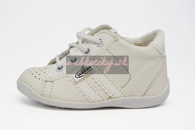 Materiál: Je zdravotne nezávadná, vyrábaná výhradne z certifikovaných polotovarov Európskeho pôvodu. Zvršok je z prírodnej hovädzej alebo teľacej kože. Podšívka v topánočkách WANDA je z dobre savého textilu Cambrella. Stielky sú taktiež z textilného materiálu s mikrovlánkom, čo zaručuje dobrú nasiakavosť, ako i rýchle odparovanie potu z detskej obuvi.Taktiež sú vybavené podporou klenby pre lepší vývoj detskej nôžky.