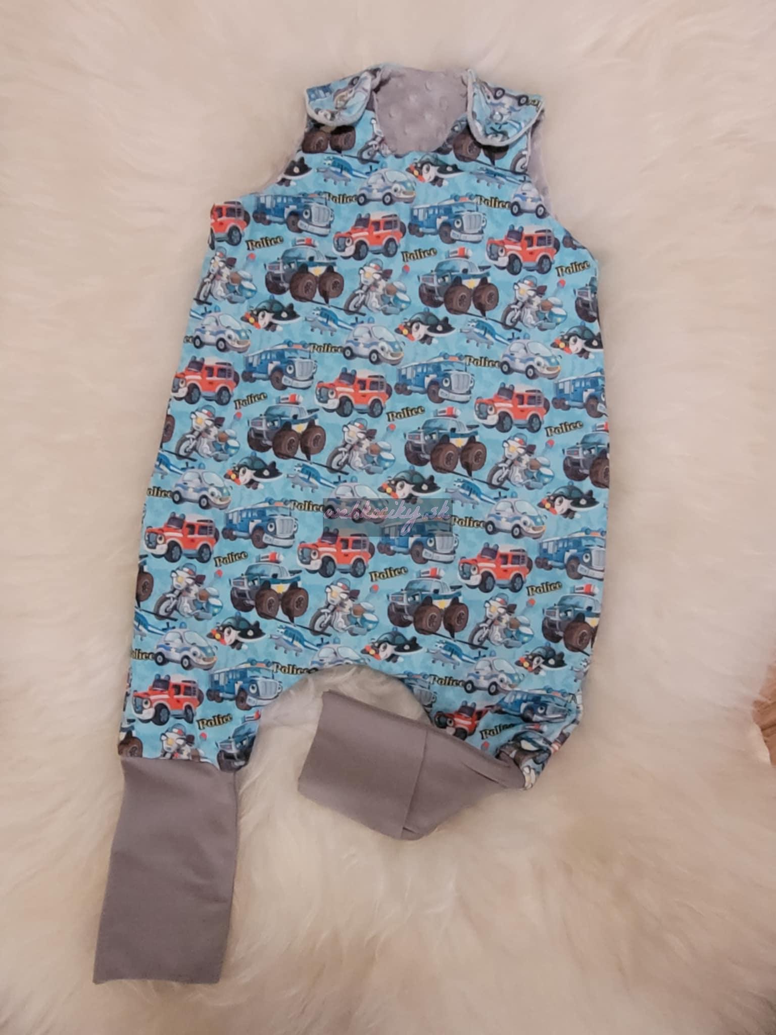 Bavlnený spací vak s nohavičkami pre deti vo výškovom rozmedzí od cca 60 cm do 70 cm.