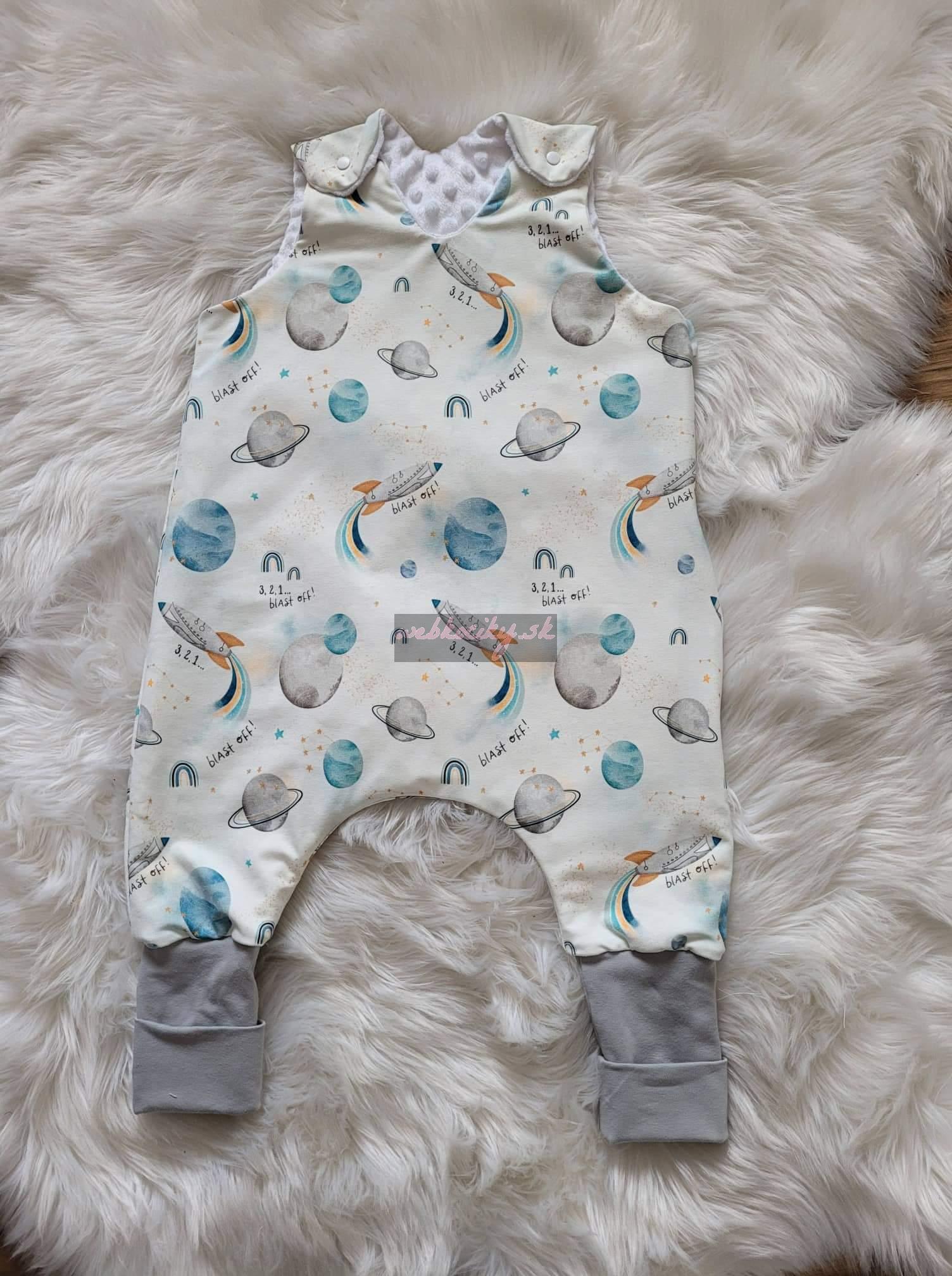 Bavlnený spací vak s nohavičkami pre deti vo výškovom rozmedzí od cca 70 cm do 80 cm.