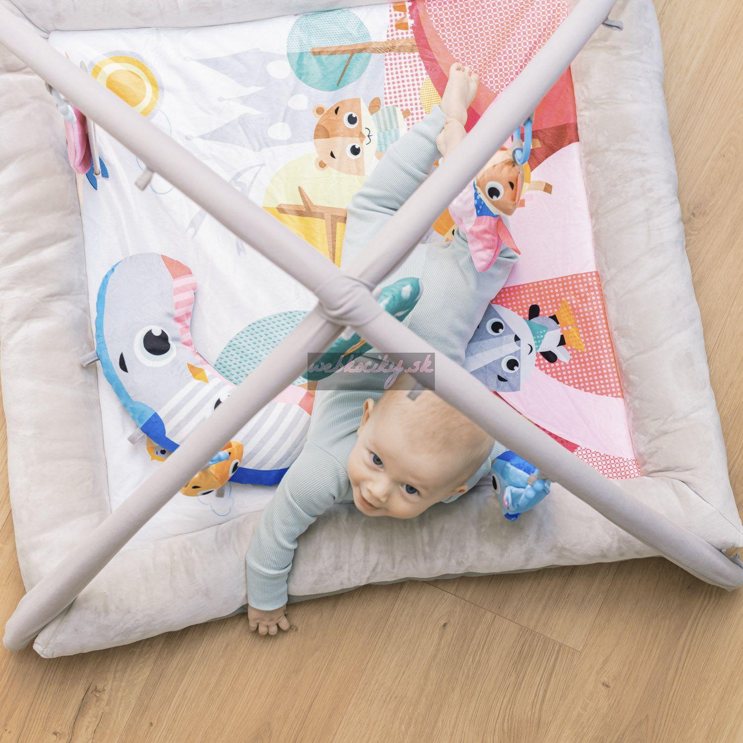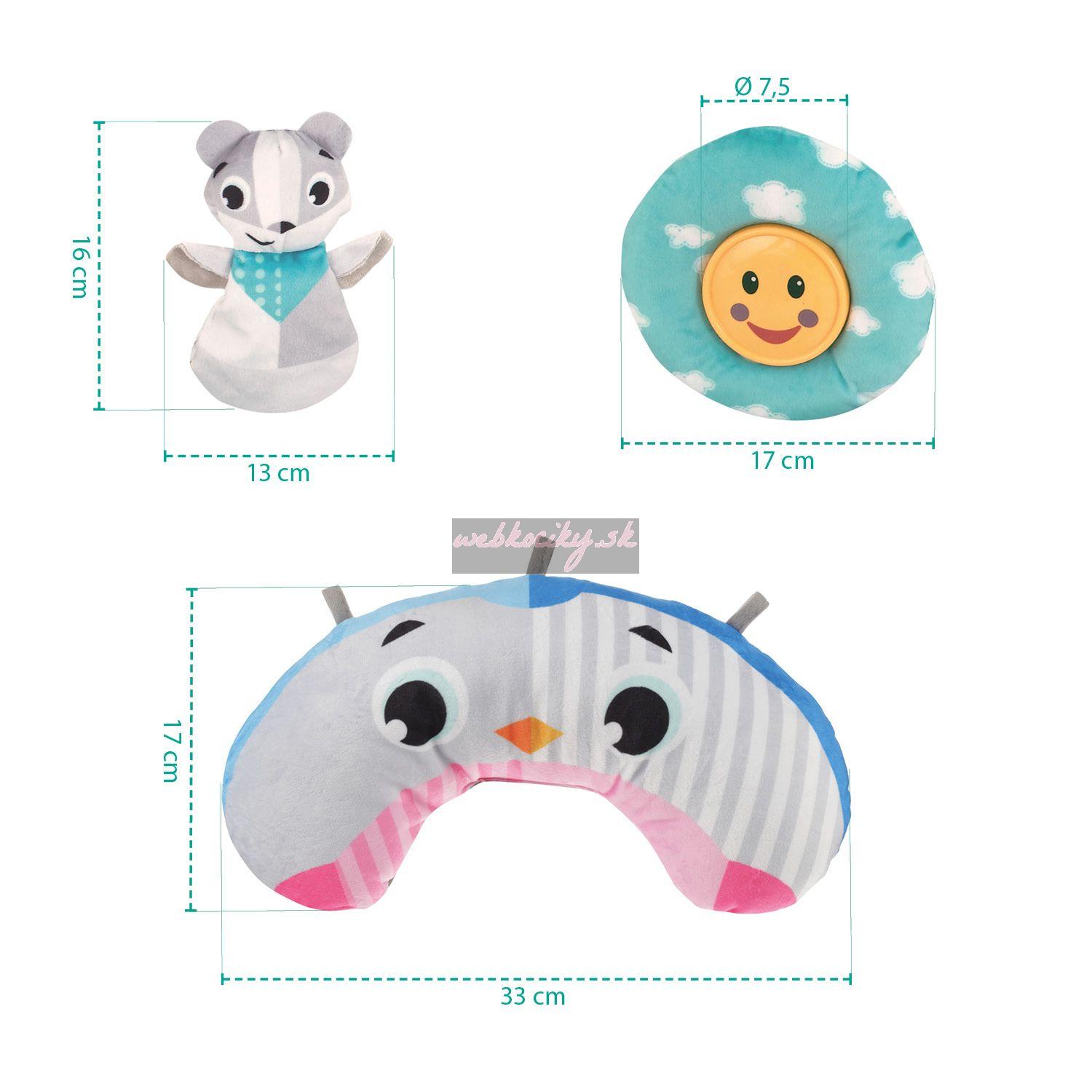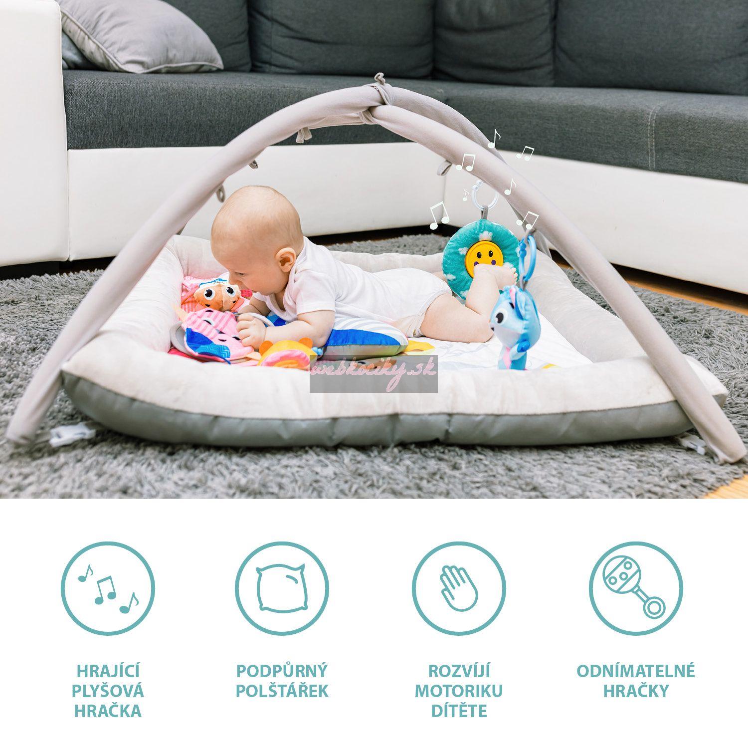 Interaktívna hracia deka 3D poskytne najmenším deťom dokonalý priestor na rozvoj a zábavu. Plyšové hračky, ktoré vydávajú po dotyku zvuky, motivujú bábätká k tréningu koordinácie oko – ruka a neskôr k úchopu.