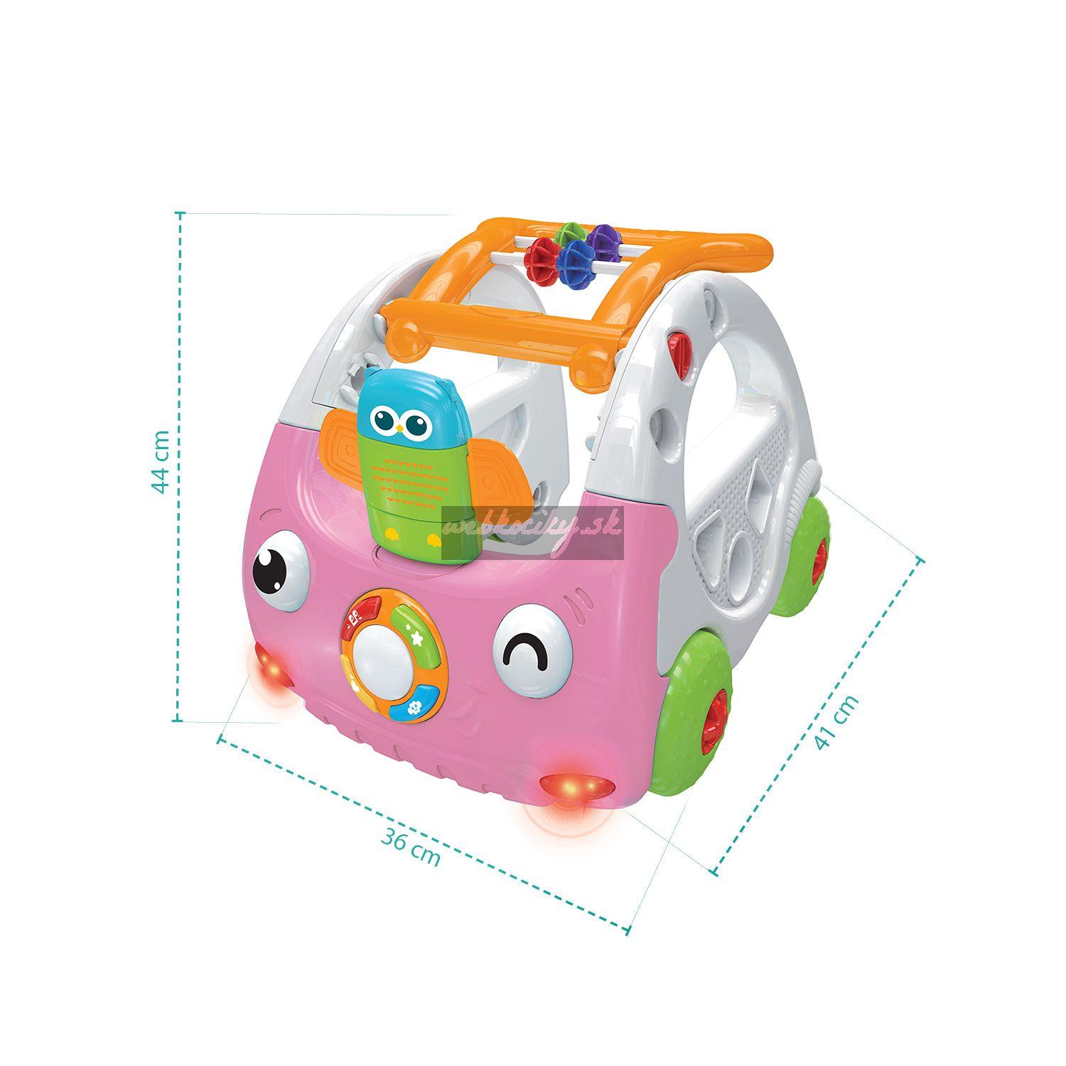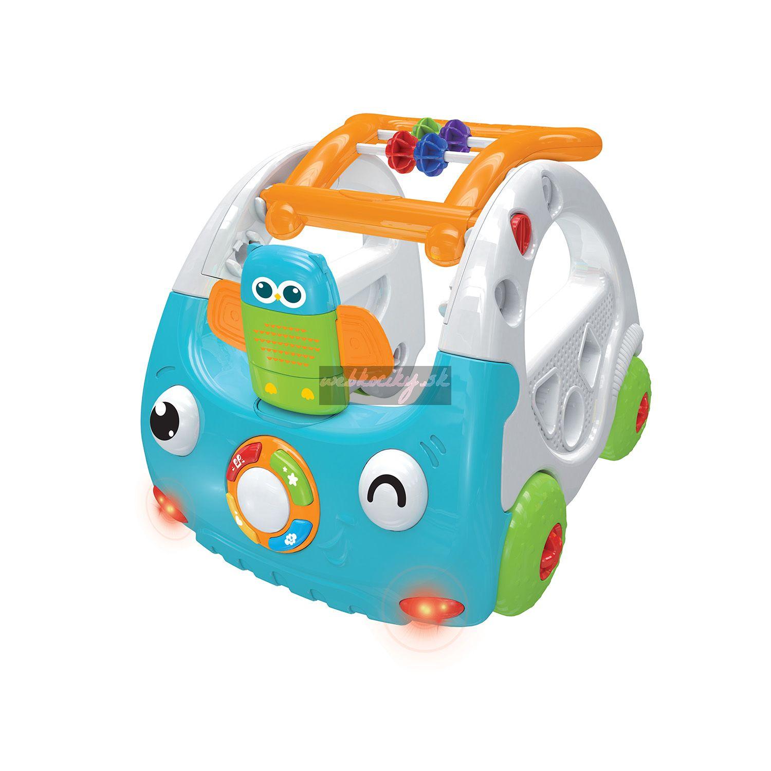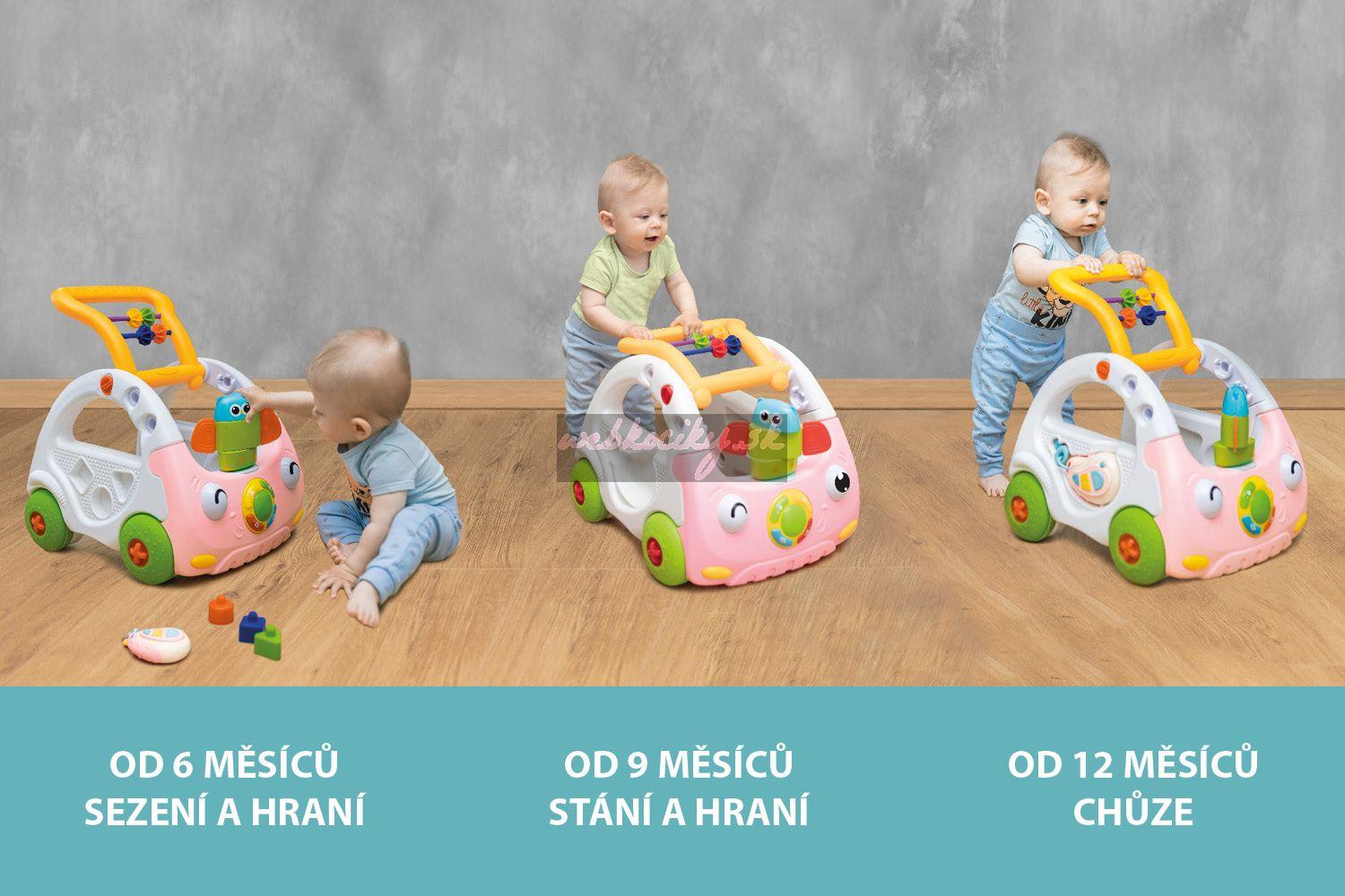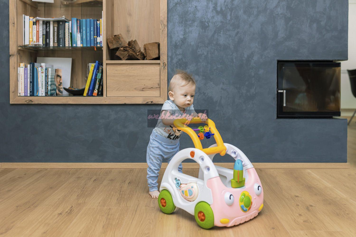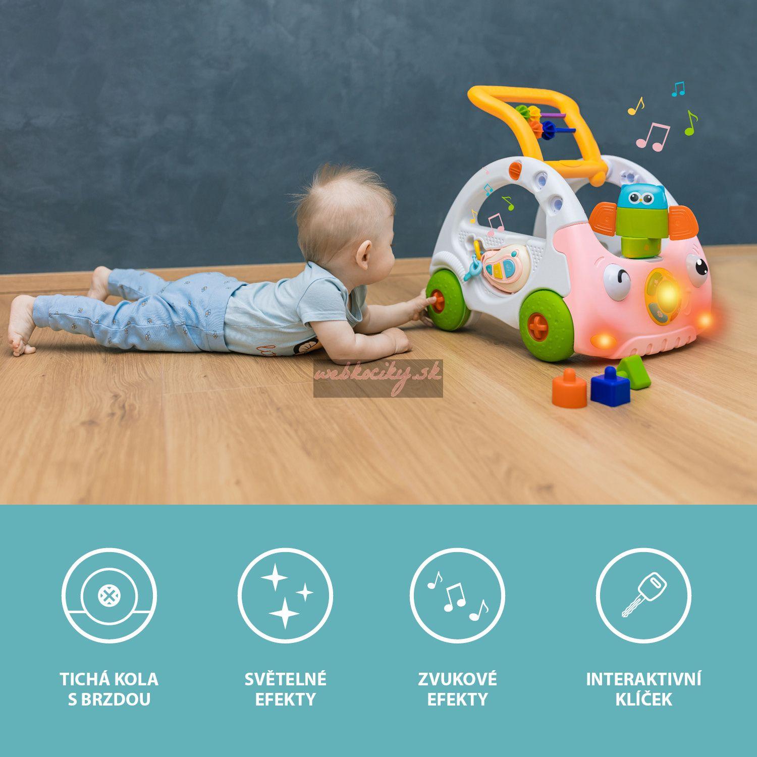 Roztomilé chodítko v tvare autíčka bezpečne prevedie dieťa prvými krôčikmi. Od 6 mesiacov slúži ako interaktívna hračka. Na boku chodítka sú umiestnené aktivity kocky, ktoré rozvíjajú motoriku a fantáziu. Ďalej je chodítko vybavená skladačkou či počítadlom. Súčasťou je aj interaktívny kľúč s tlačidlami, vďaka ktorým autíčko vydáva zvuky a svetelné efekty.