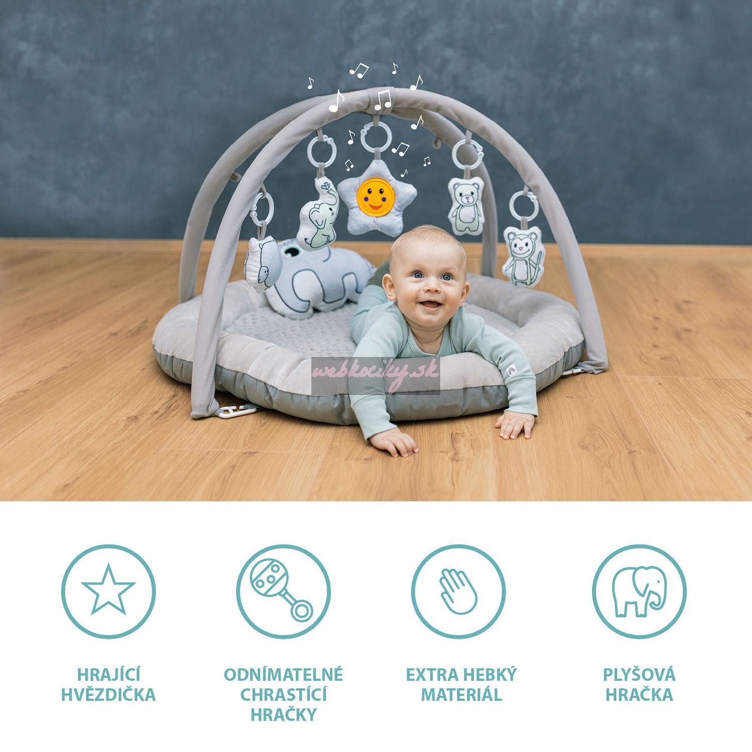 Hebučká hracia deka Comfort je ideálnou prvou hračkou pre vaše dieťatko. Interaktívne plyšové hračky so štrchátkom zábavnou formou motivujú bábätko k tréningu koordinácie oko - ruka a neskôr k úchopu. Hračky sa dajú jednoducho odopnúť z hrazdičky a je možné ich použiť na autosedačke alebo kočíku.