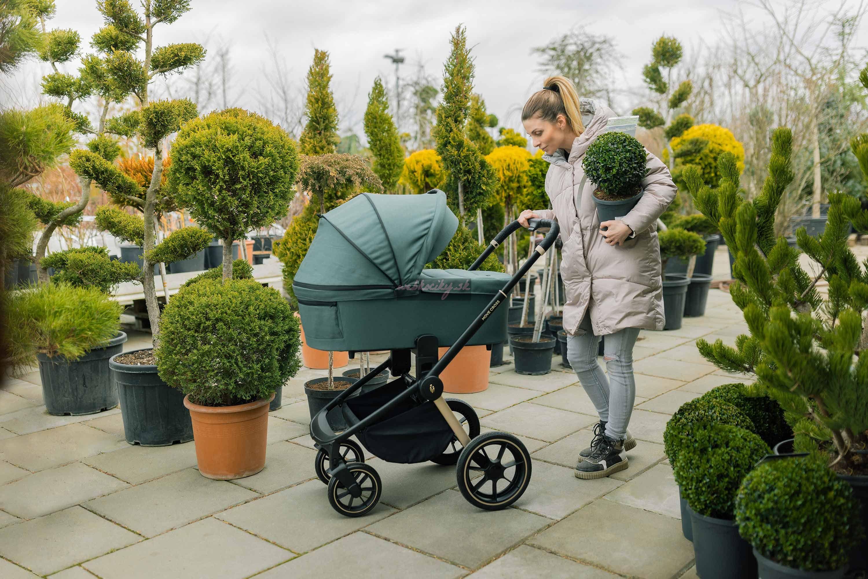 Rozšíriteľná strieška spolu s nánožníkom chráni dieťa pred chladom a ostrými slnečnými lúčmi.