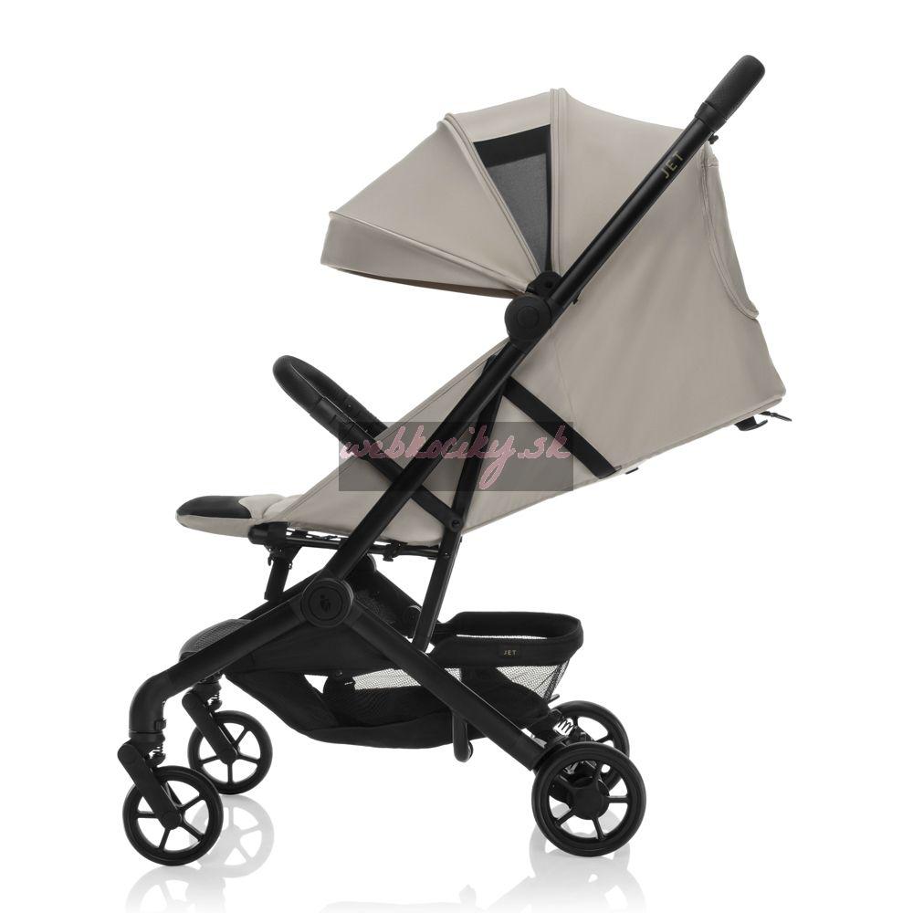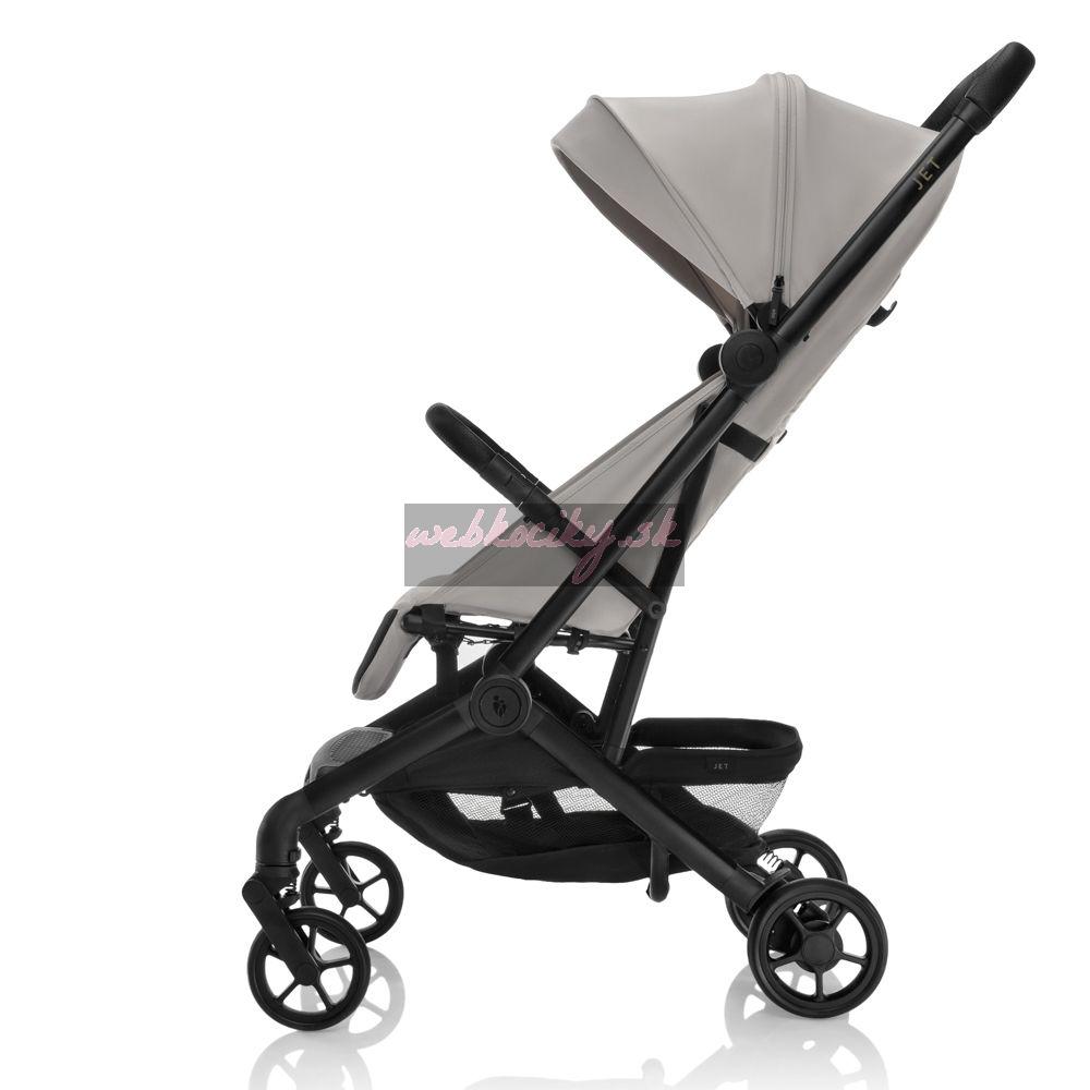 Zopa Jet je dostupný v moderných farebných variantoch. Detaily ako priedušné polstrovanie pásov, zadné vrecko na drobnosti či nášľapná brzda podčiarkujú jeho prémiové spracovanie.
